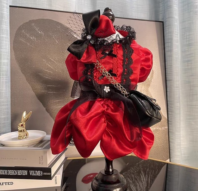 レッドの生地にホワイトレースやホワイトフリルを効かせた、美しいデザインのお嬢様ドレスです♡ パール飾りやパールボタン飾りも施されて上品さが増しています。 前ボタン。伸縮性なし。 【予約商品】になります。30日前後の納期をいただきます。 サイズ XS 胸囲27cm 着丈20cm S 胸囲30cm 着丈23cm M 胸囲35cm 着丈25cm L 胸囲40cm 着丈30cm XL 胸囲45cm 着丈35cm XXL 胸囲52cm 着丈38cm