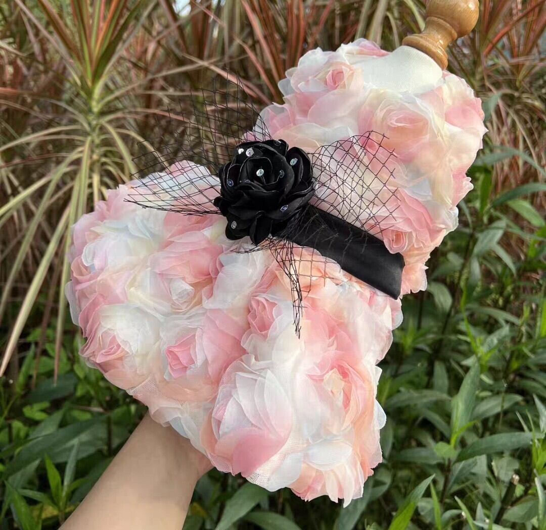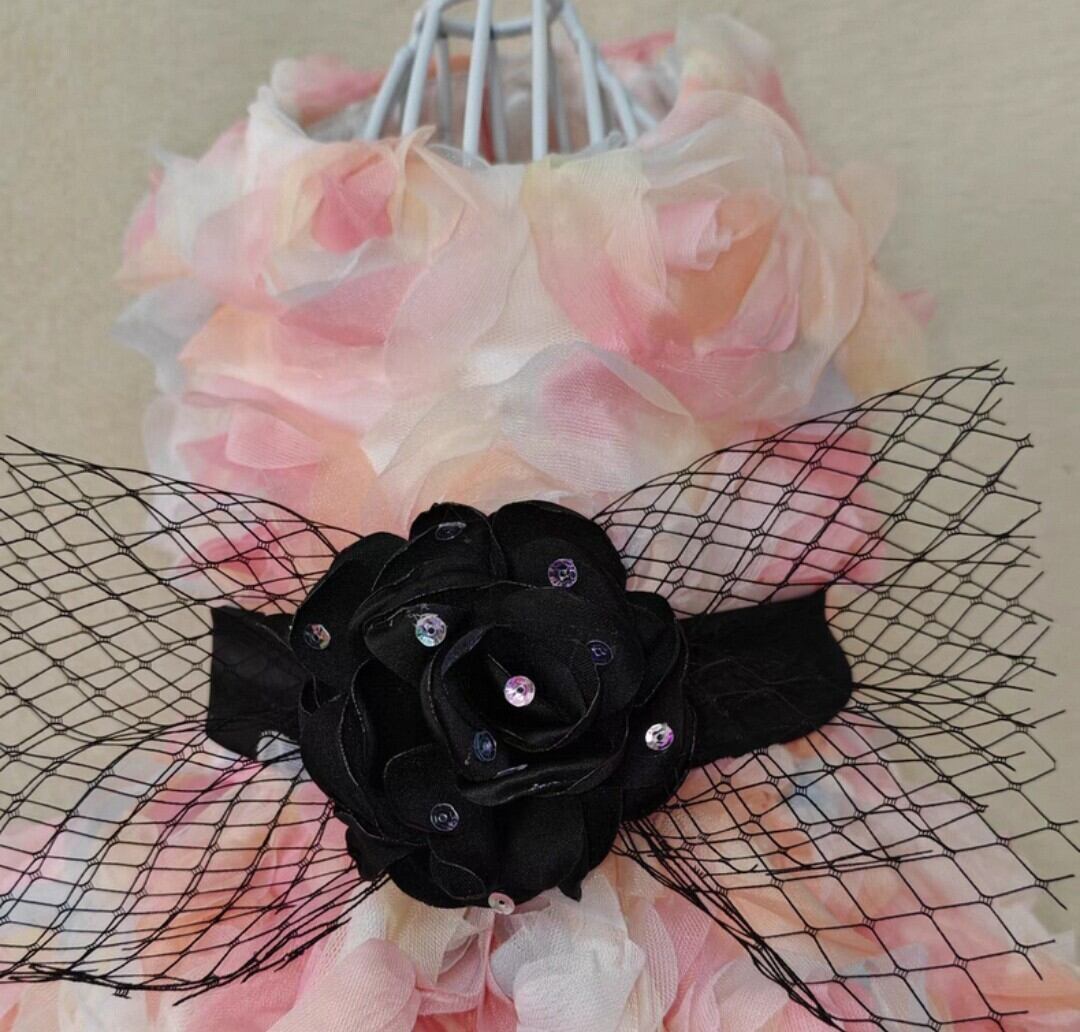 【予約商品】ブラックローズ飾りのピンクローズドレス