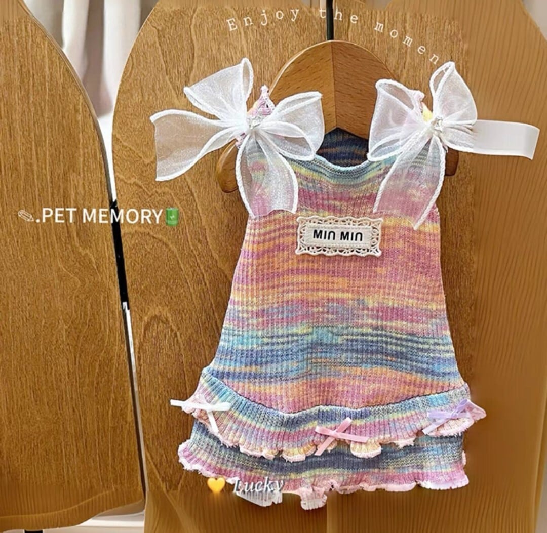 肩のホワイトシフォンリボンが可愛い、カラフルなグラデーションワンピース♡