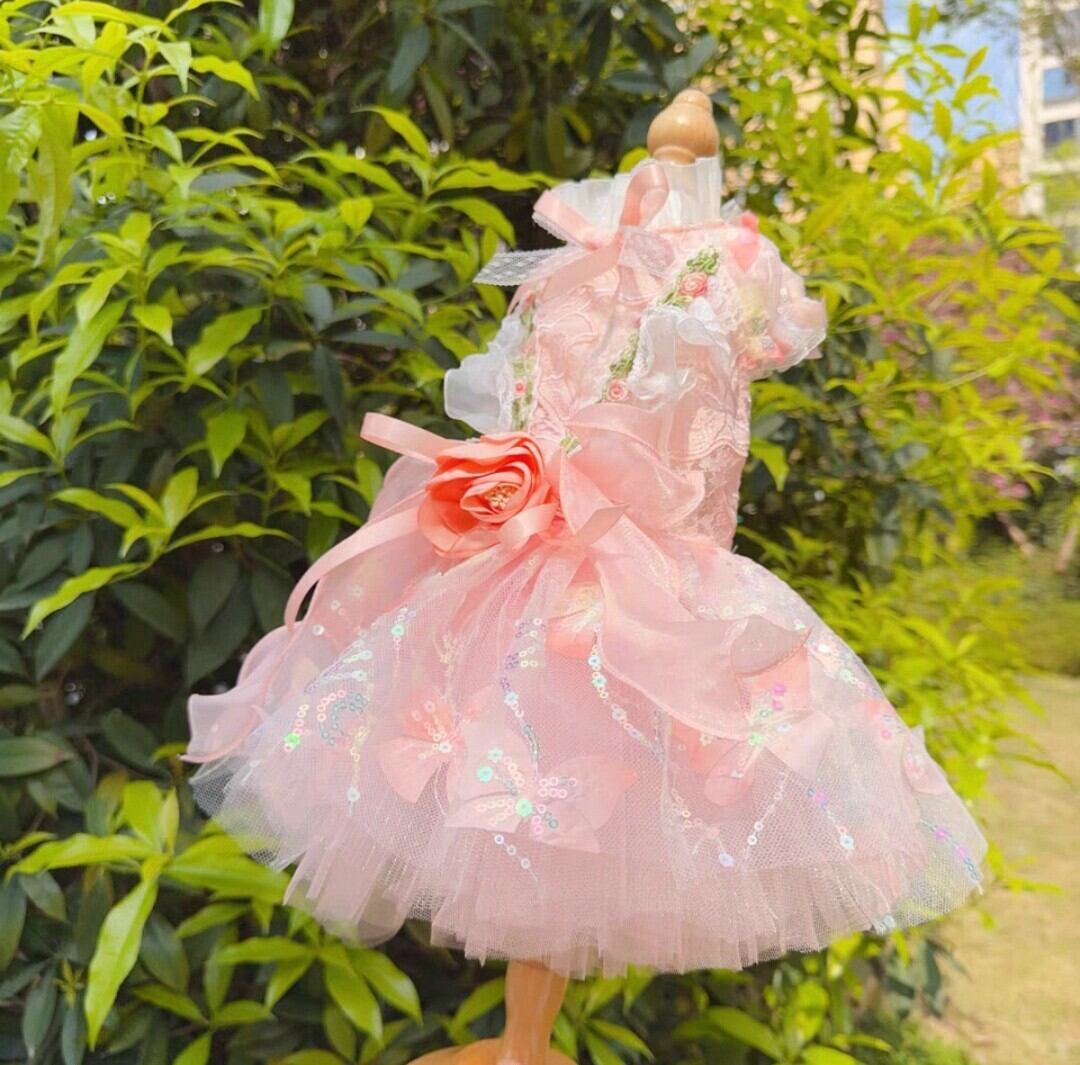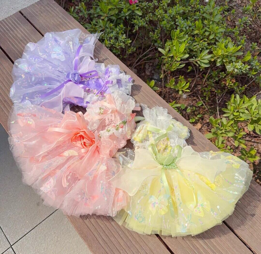 背中には小花のレースが使われていて可愛らしい、フリルにはスパンコールも散りばめられた華やかなフラワーモチーフのショートドレス♡