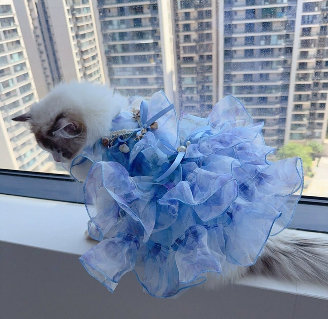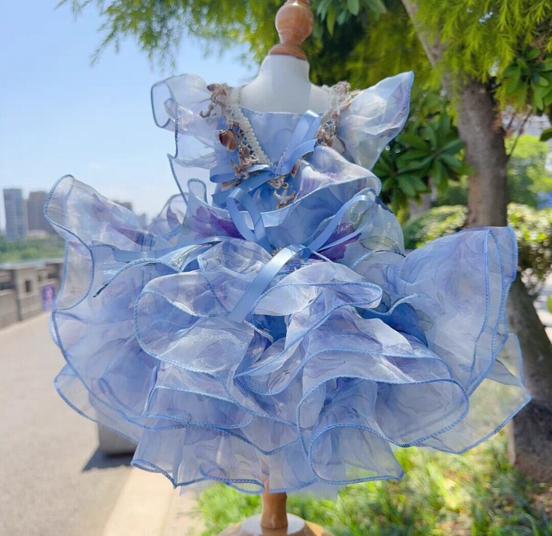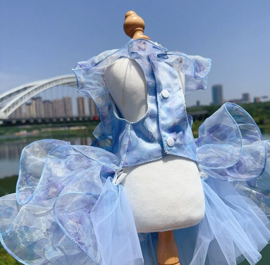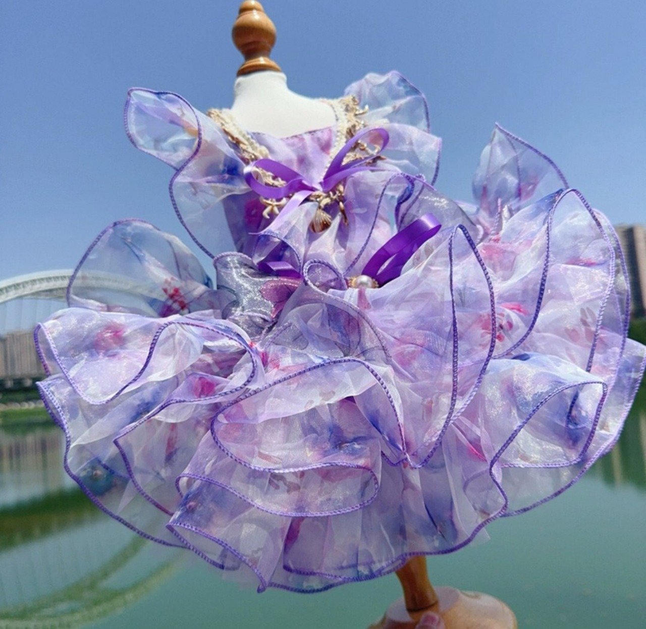 肩から背中にかけてシェル(貝殻)飾りがほどこされたふんわりフリルのショートドレス♡