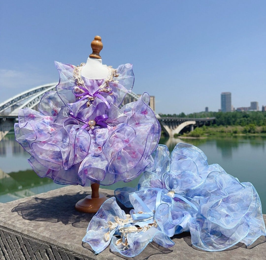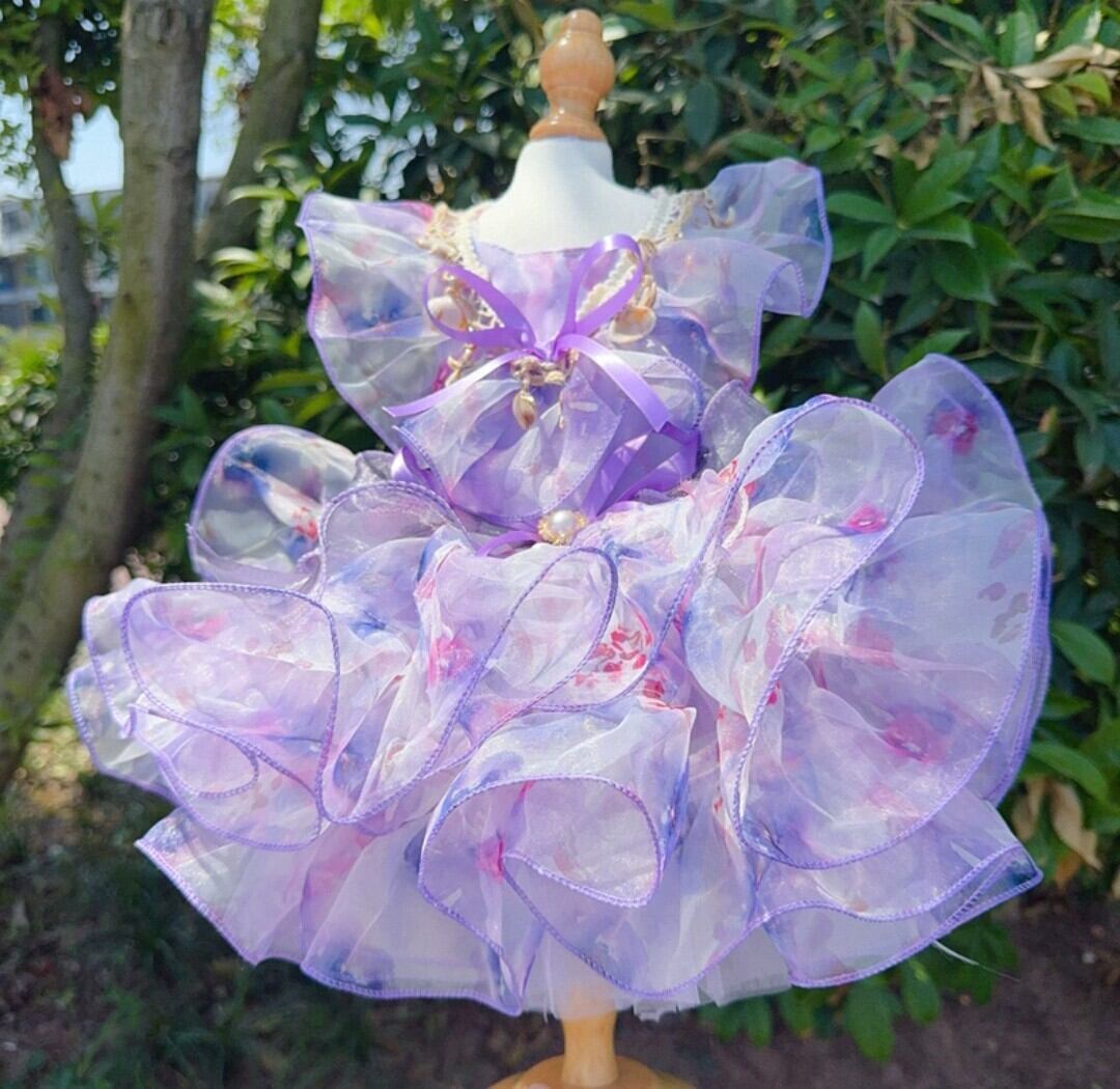 腰のリボンとドレスのフリルは透け感のあるふんわり生地使用の素敵なドレス。