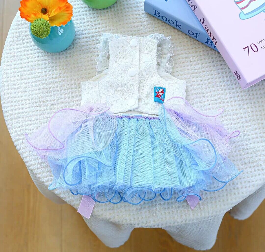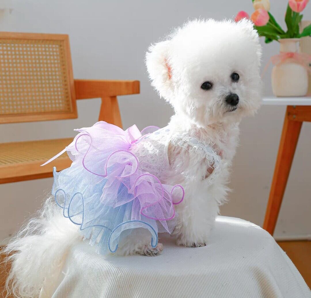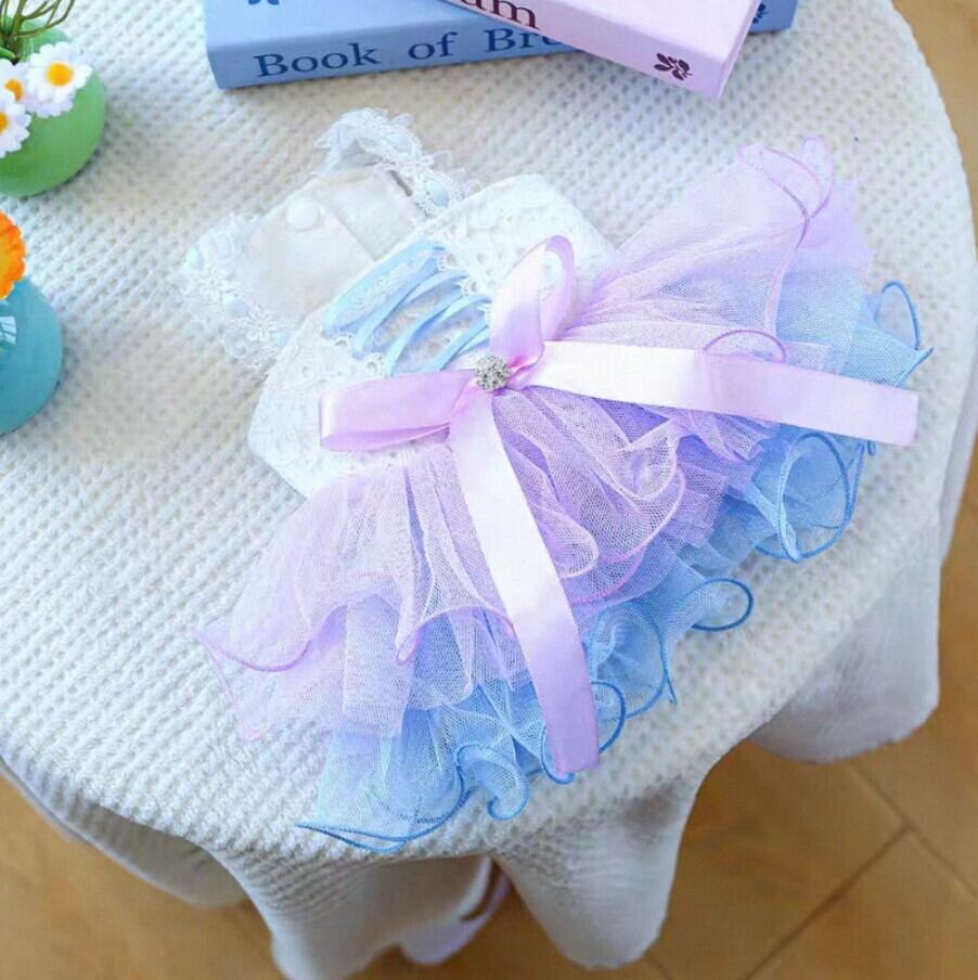 パープルとブルーのフリルがエレガント。背中のクロスリボンも可愛いらしいサマードレス♡