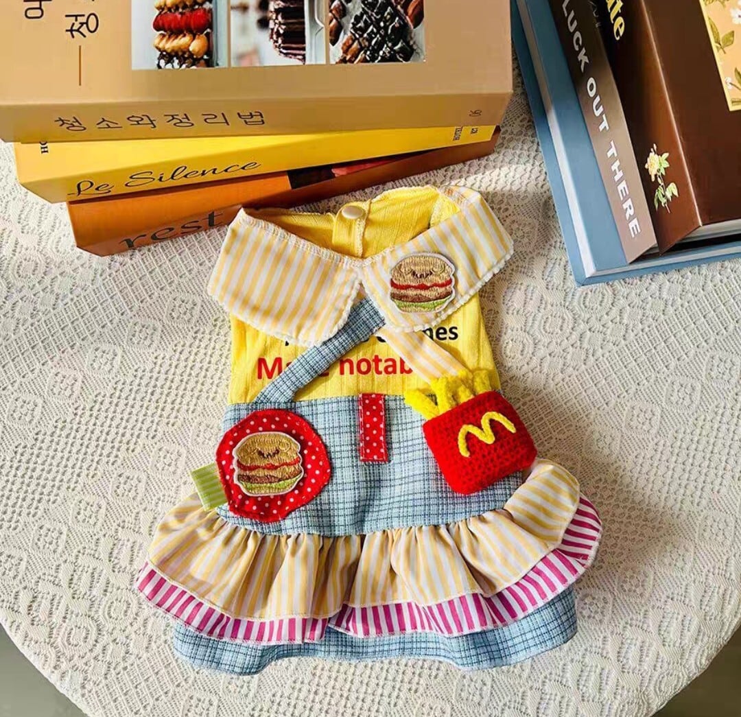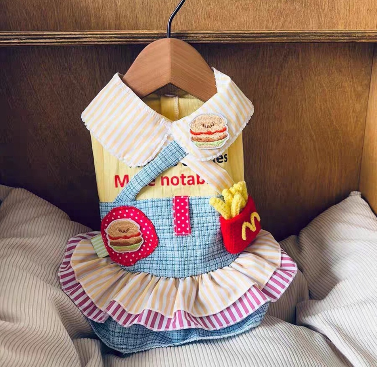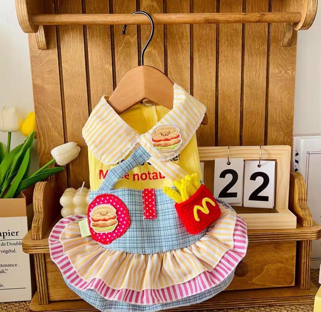 ハンバーガーやポテトのモチーフが可愛い、カラフルなワンピース♡