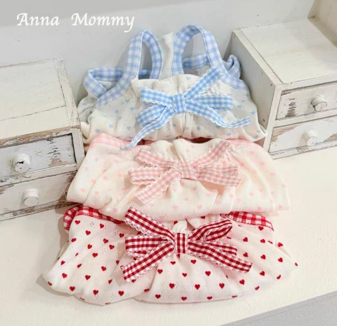 【予約商品】ハート柄 チェックリボンのキャミワンピ