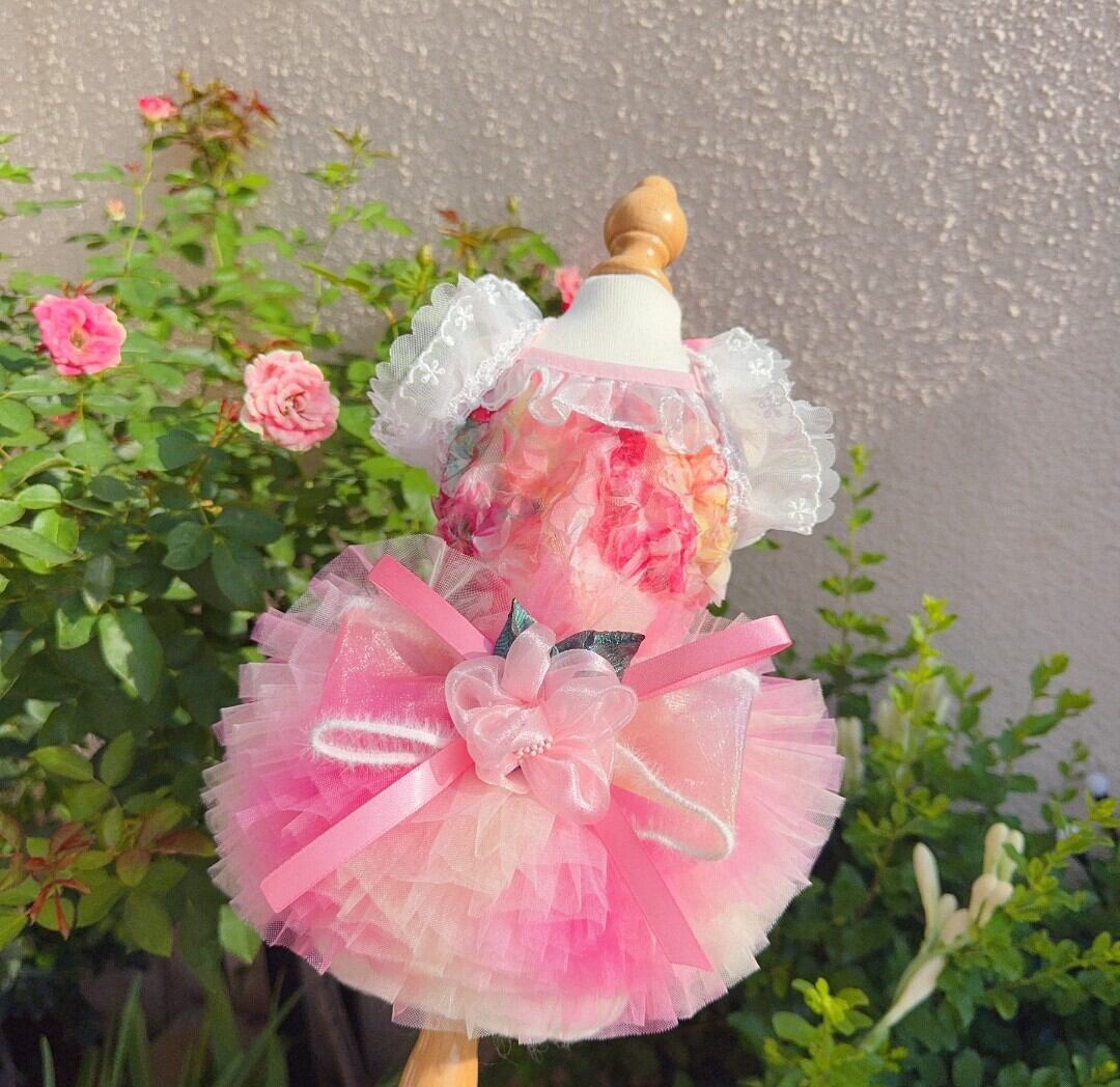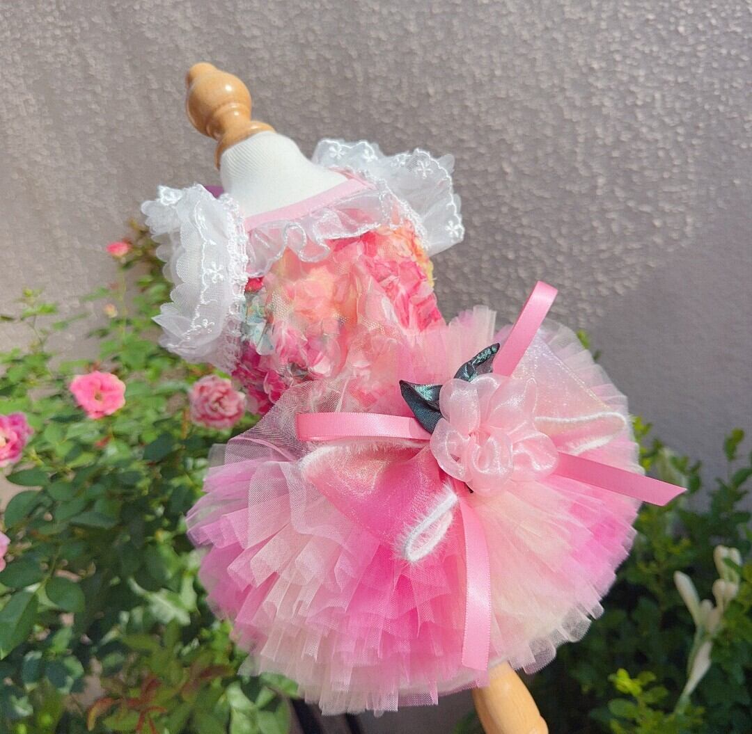 腰のリボンには立体フラワーモチーフ付き。華やかなグラーデーションチュチュドレス♡