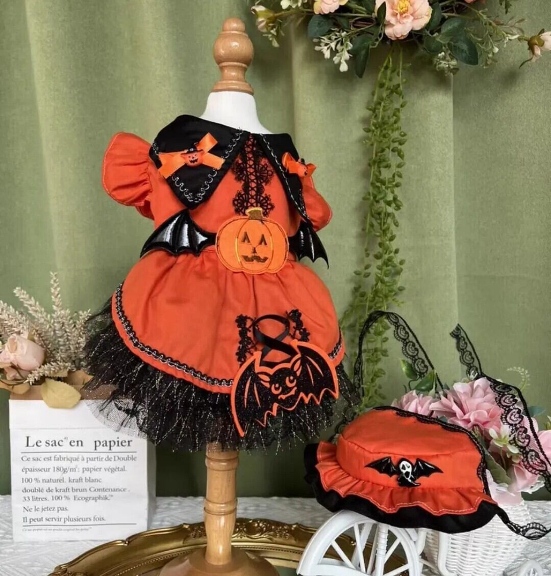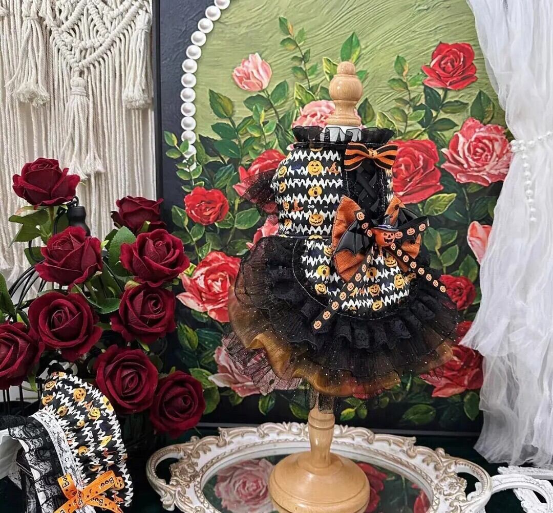●『DoDo ハロウィン柄のオレンジ×ブラックドレスワンピース』