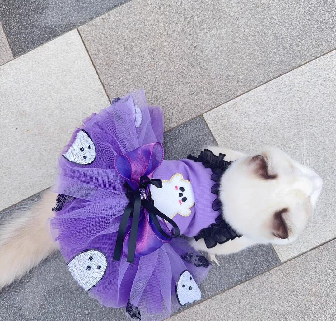 背中とスカート部分のお化けモチーフが可愛らしいハッピーハロウィンドレス♡