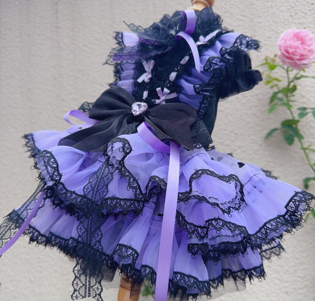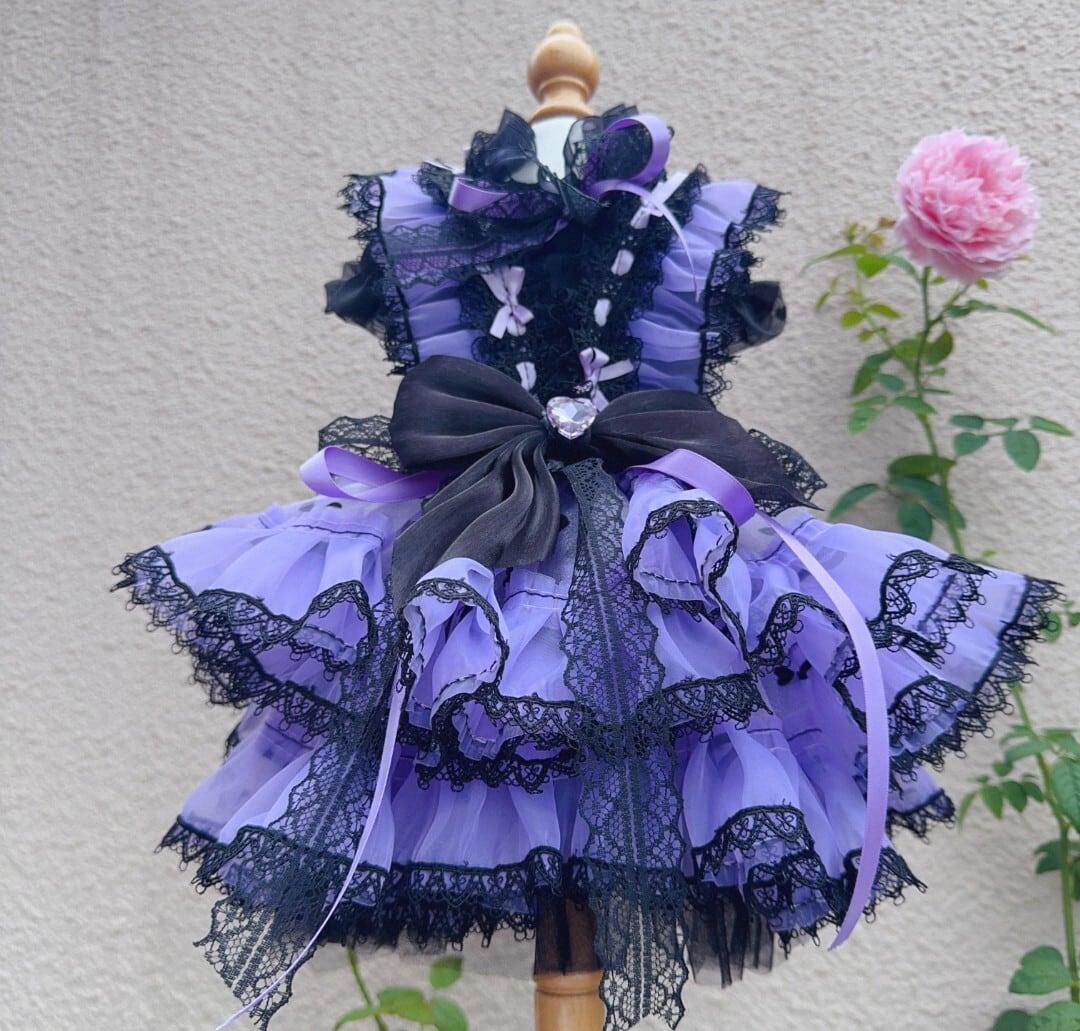 ブラックのレース使いが美しい、ブラック×パープルのロリータ風ショートドレス♡