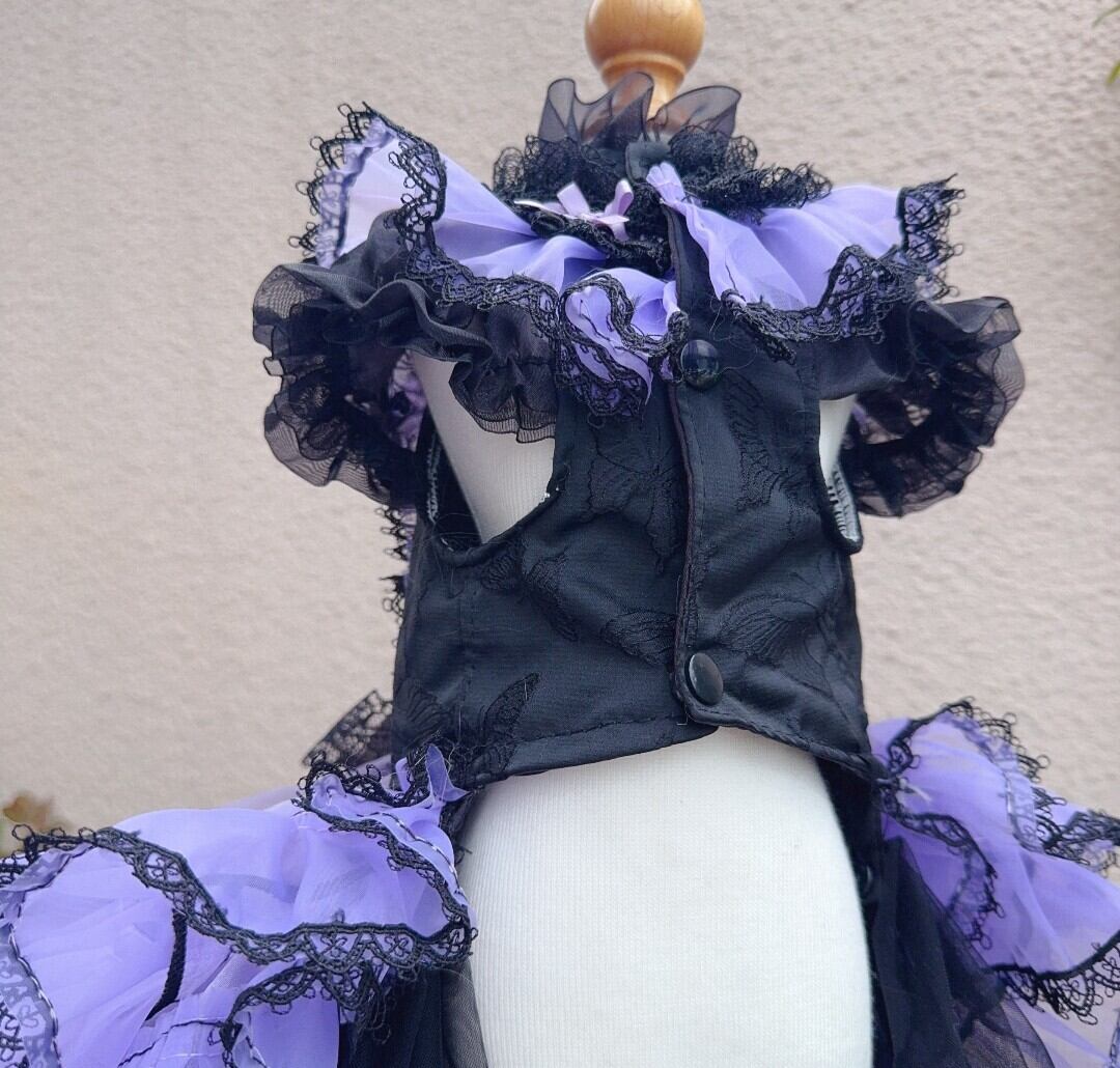 ブラック×パープルなので、ハロウィンにはもちろん、特別な日の撮影にもぴったりな大人可愛いゴージャスなドレスです。