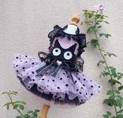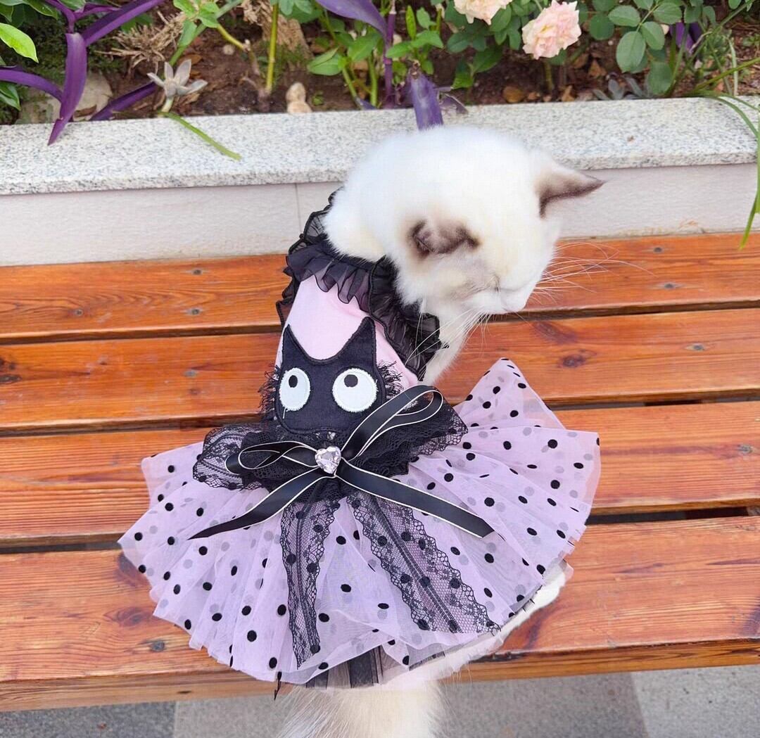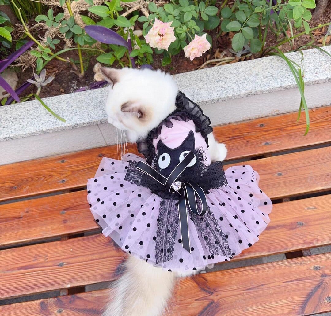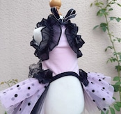 背中には黒猫モチーフ。ブラックフリルやリボンも素敵なドット柄フリルのドレス♡