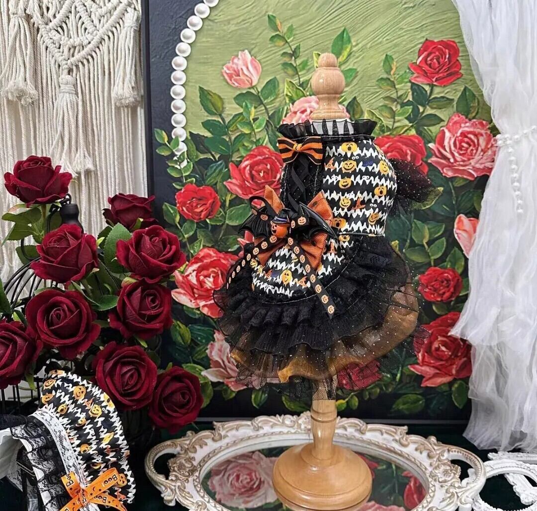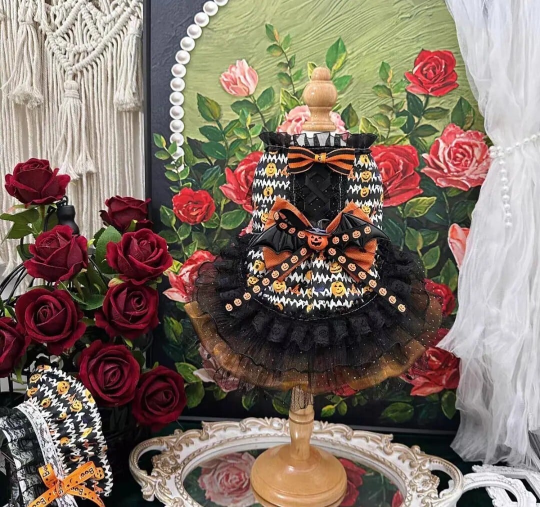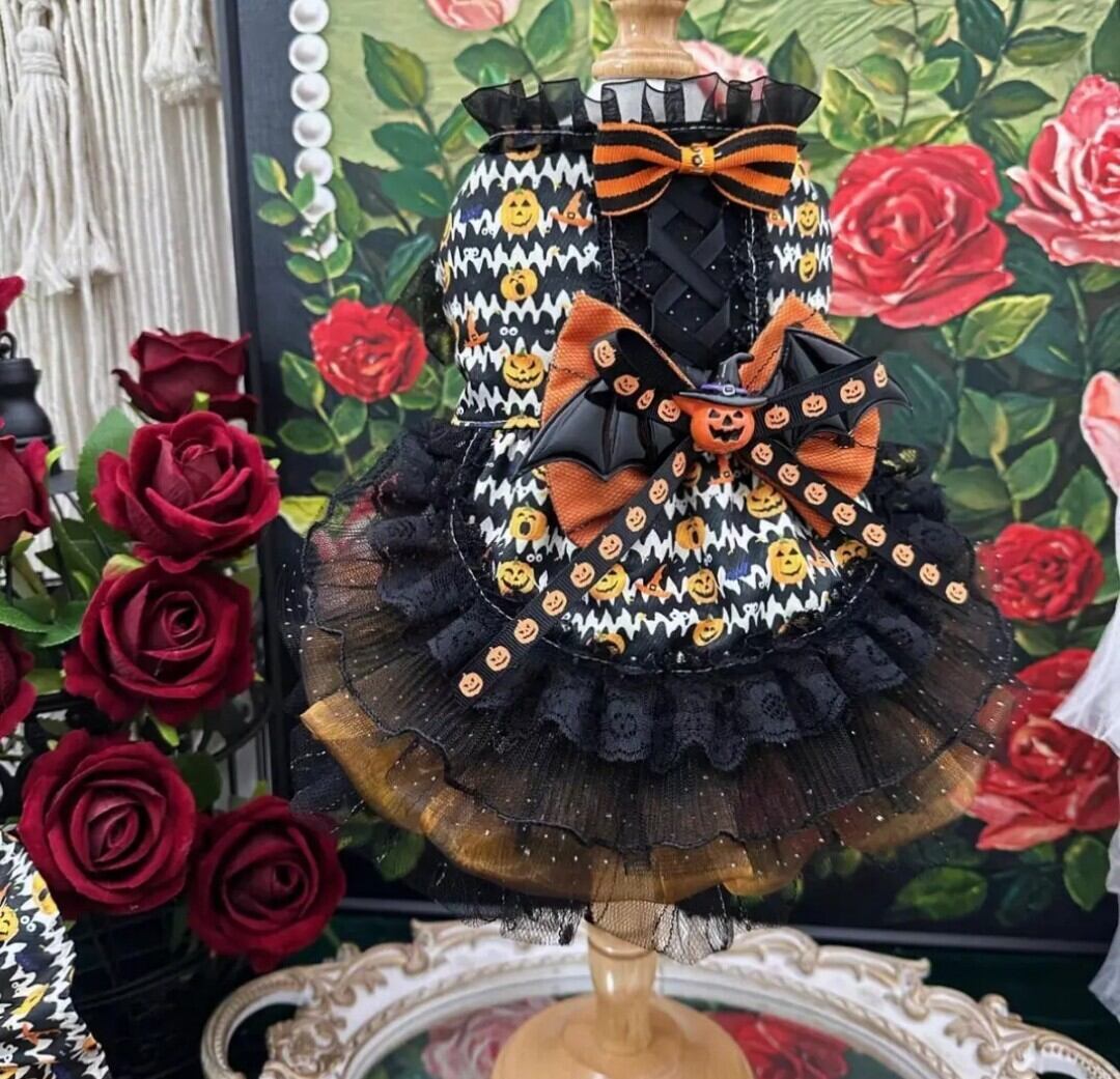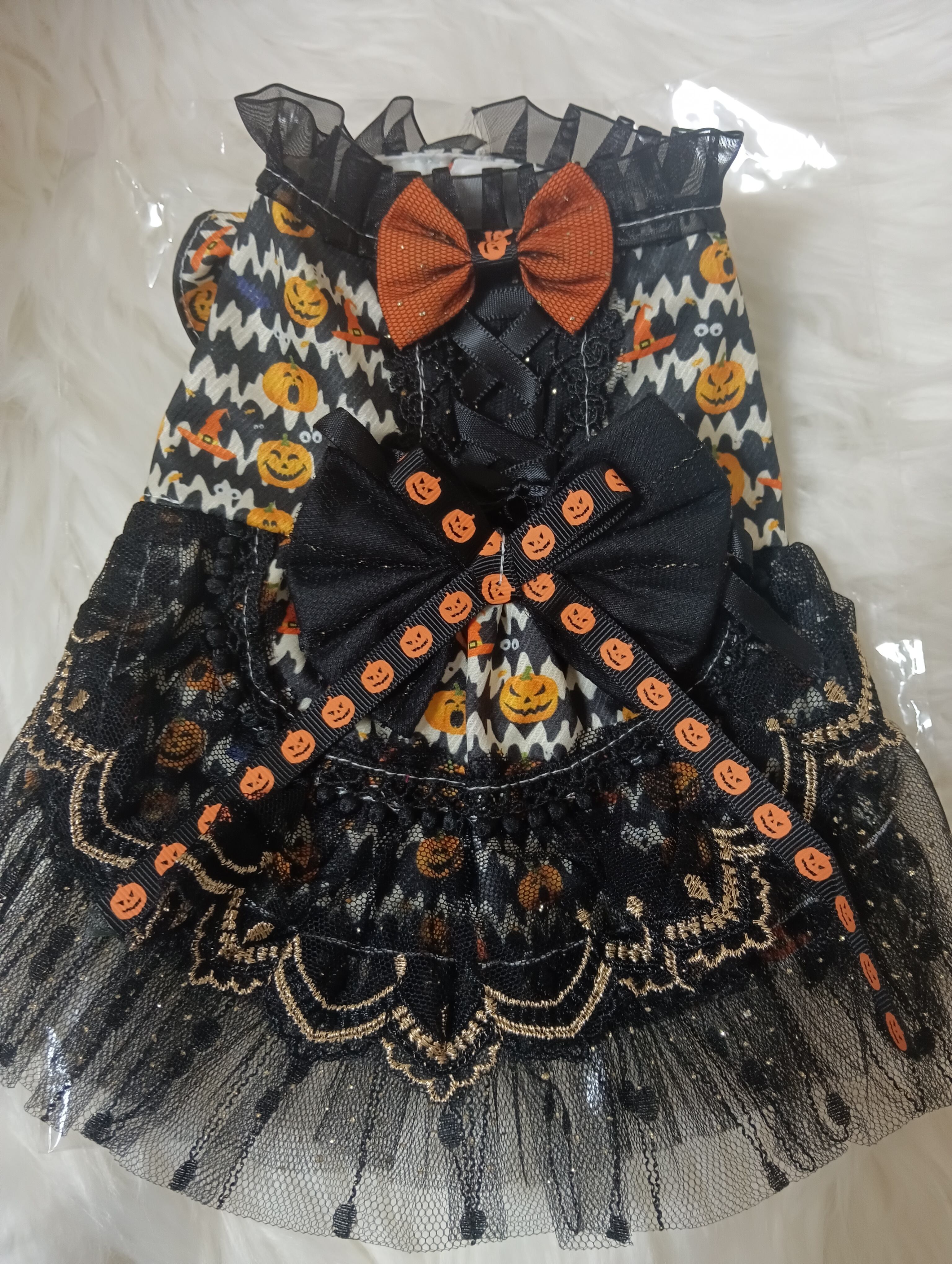 ジャック・オー・ランタン柄の生地のブラックレースも美しいハロウィンワンピース♡
