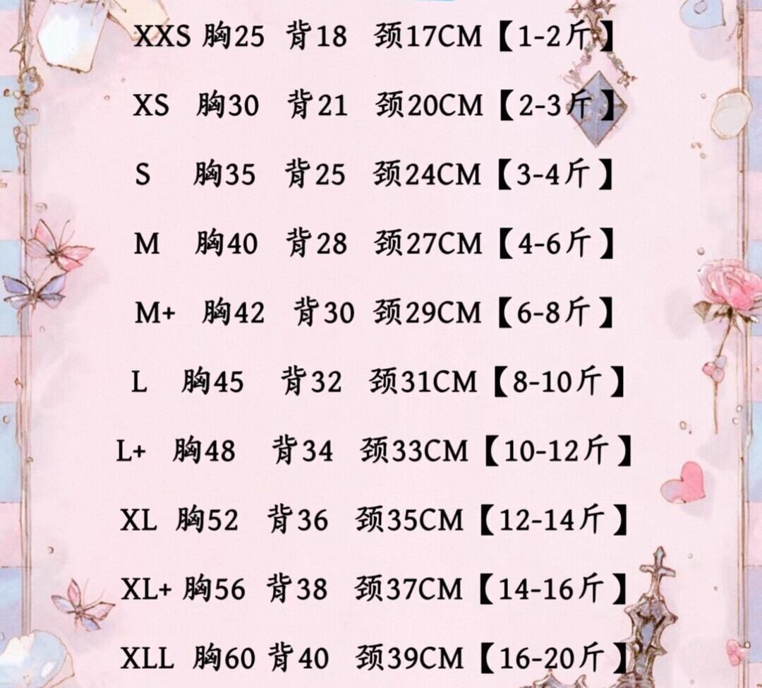 サイズは最後の画像でご確認の上、ご注文をお願いいたします。サイズ表は、胸囲、着丈、首周りの順にサイズが載っています。