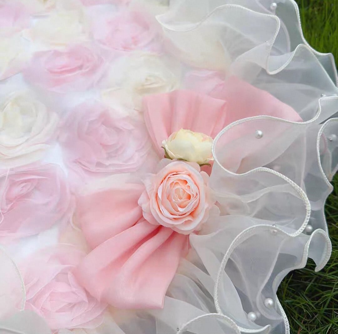 【予約商品】ピンクとアプリコットのローズプリンセスカフェマット(内径45cm)