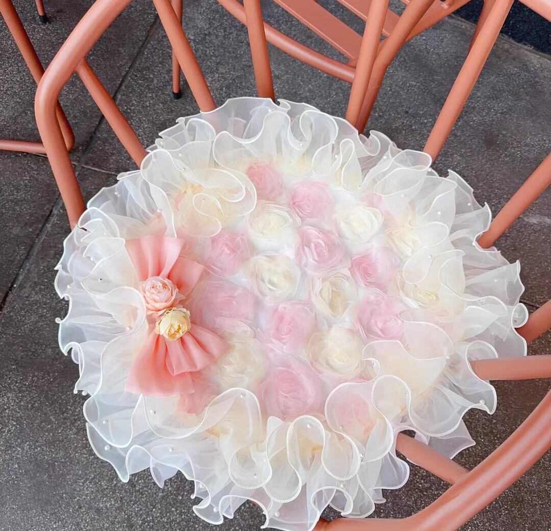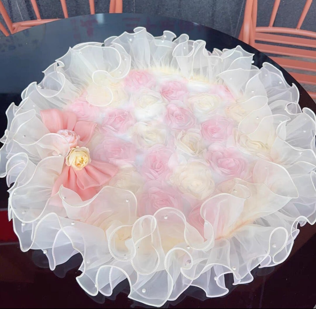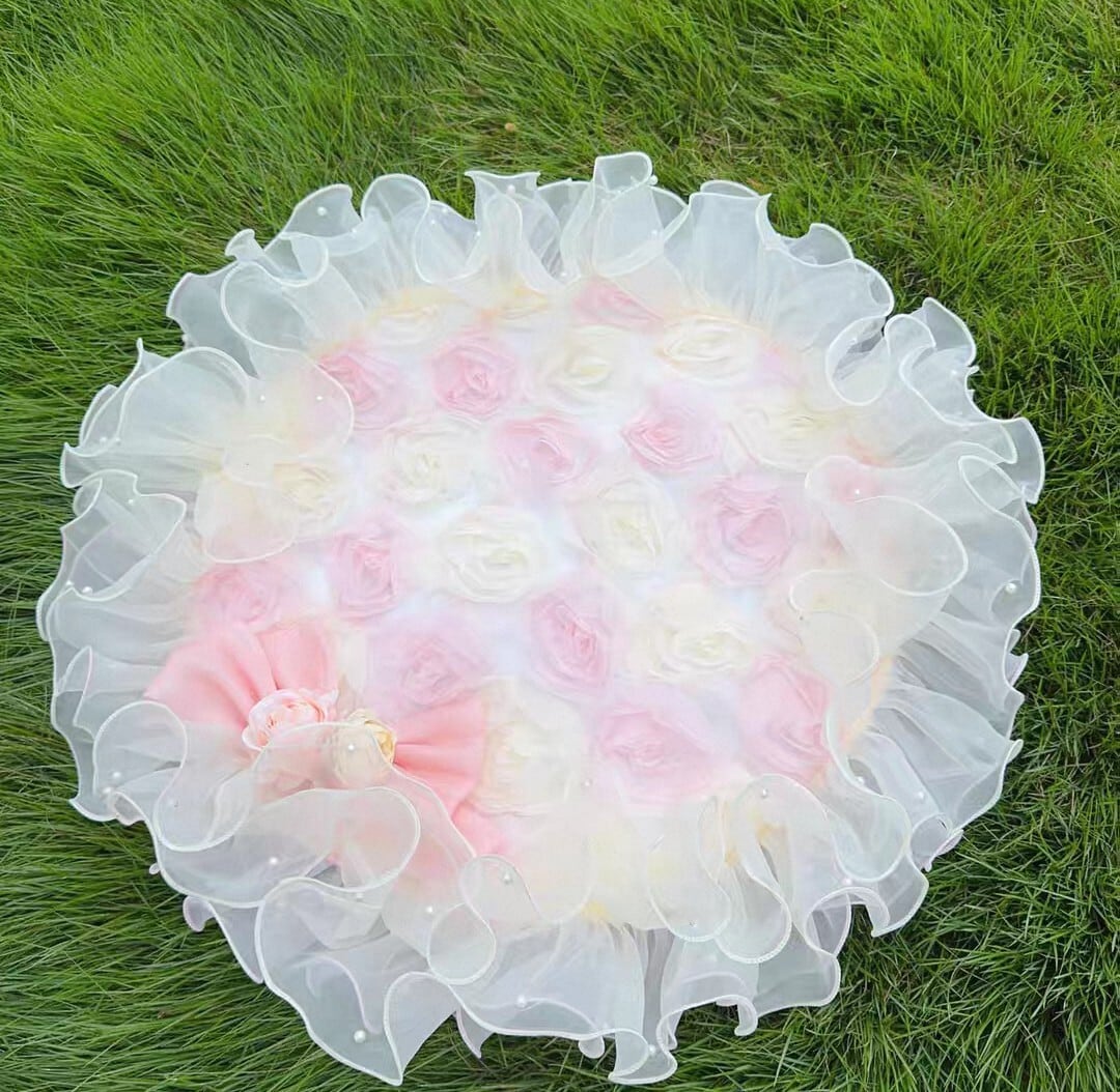 【予約商品】ピンクとアプリコットのローズプリンセスカフェマット(内径60cm)