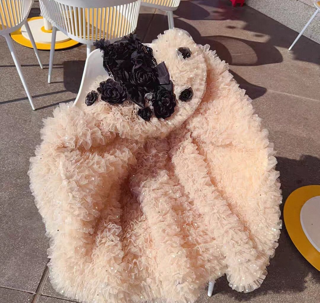 ショートドレス、ロングドレスと使い分け出来る2way。撮影会やクリスマス、お誕生日などの撮影にぴったりな華やかなドレスです。