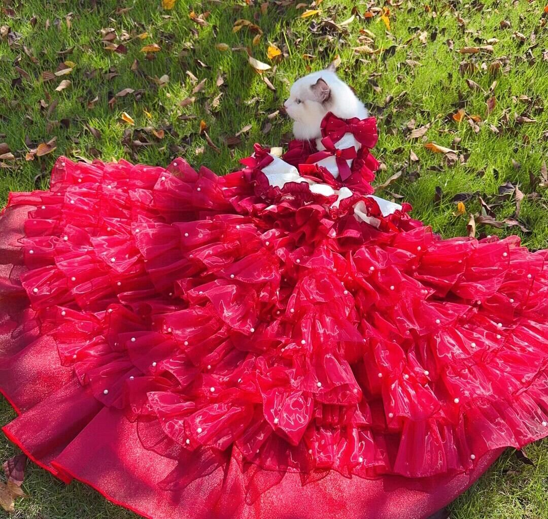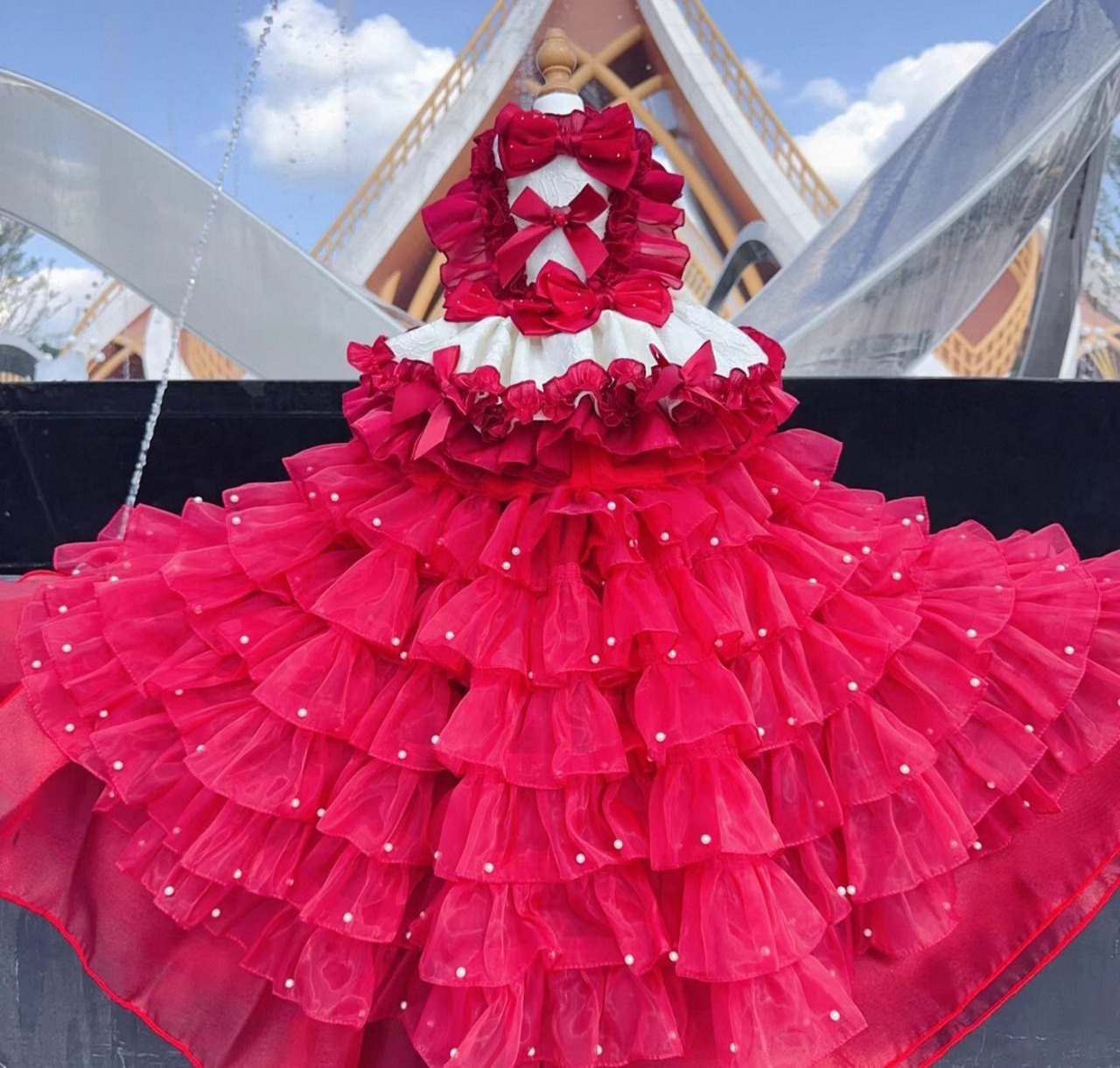 赤いリボンとフリルがゴージャスなプリンセス2wayロングドレス♡