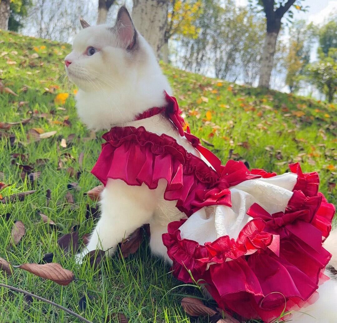 胴回りはホワイトで、レッドリボンやレッドフリルが引き立ちます。