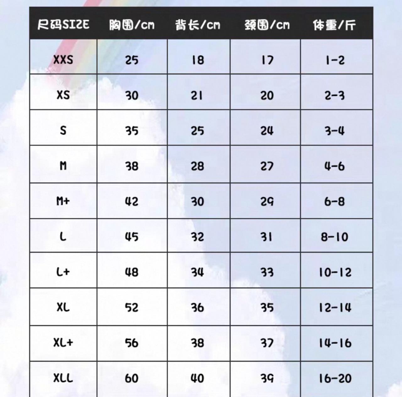 サイズは最後の画像でご確認の上、ご注文をお願いいたします。サイズ表は、胸囲、着丈、首周りの順にサイズが載っています。
