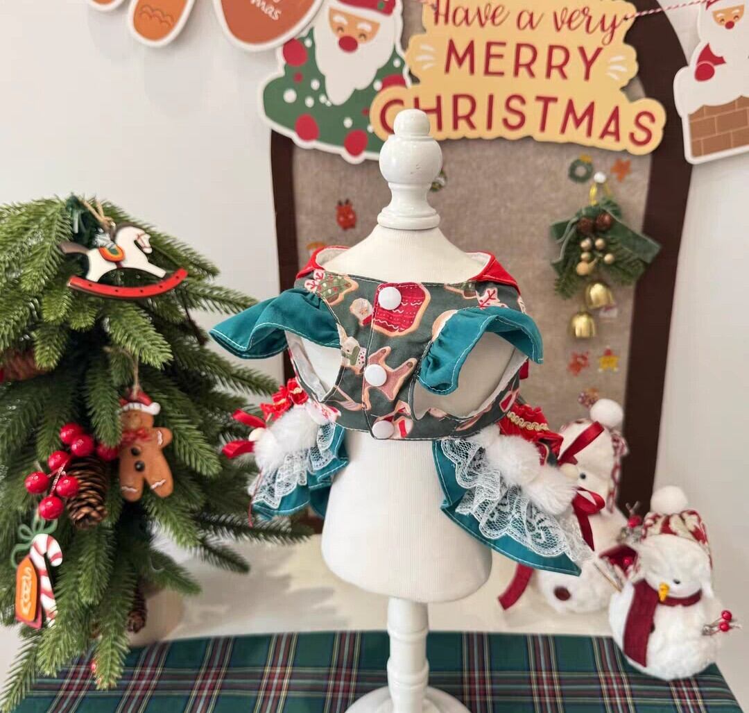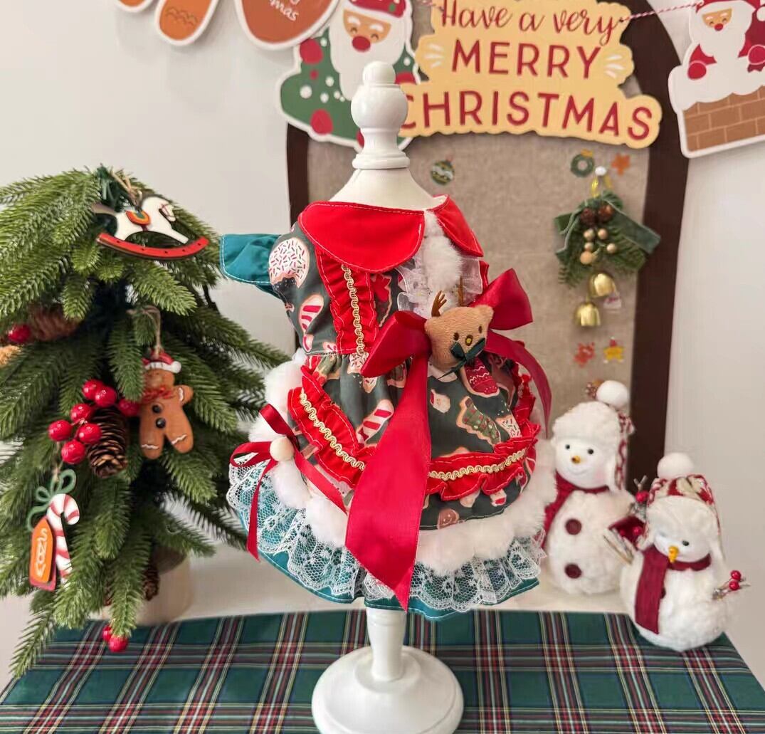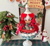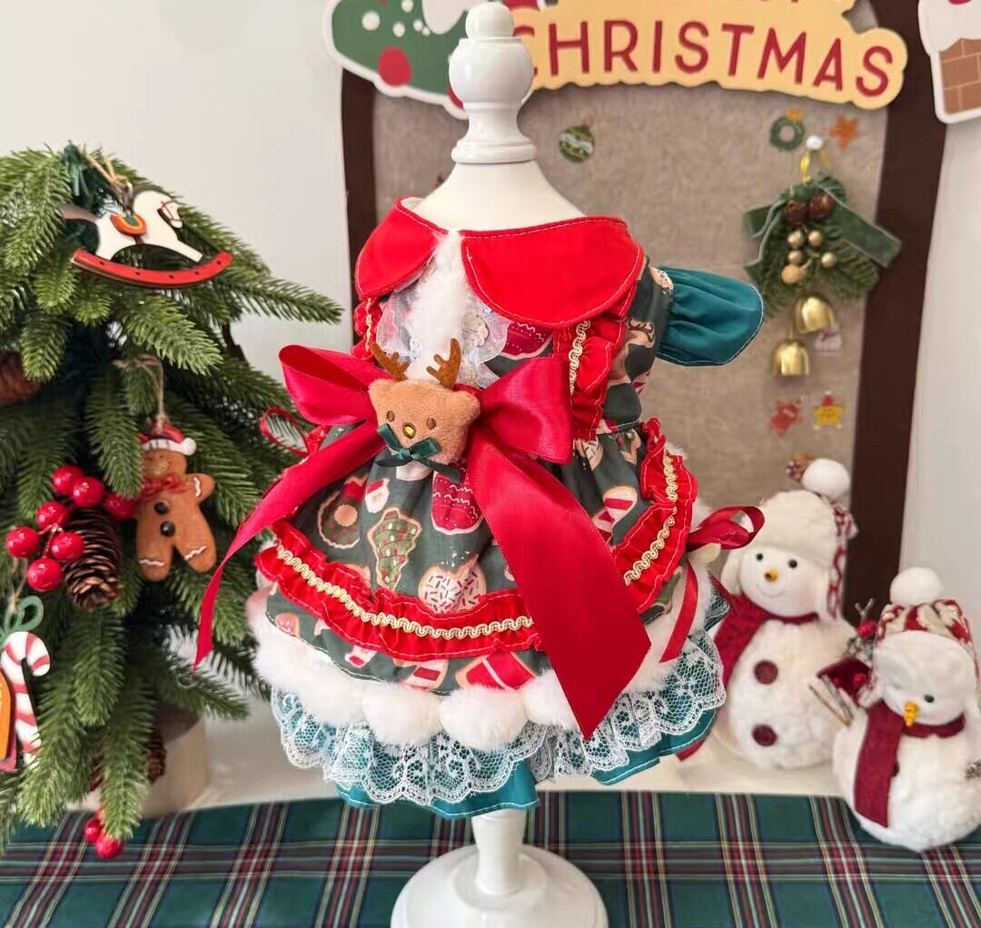腰の長めのリボンにはトナカイのモチーフ付き。リボンやレース、フェイクファーがほどこされた、キュートなクリスマスワンピース♡