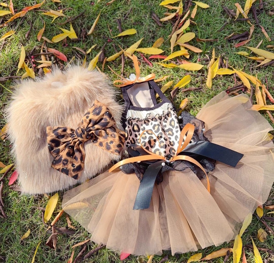 【予約商品】ファーベストと豹柄ドレスのセット(3カラー)