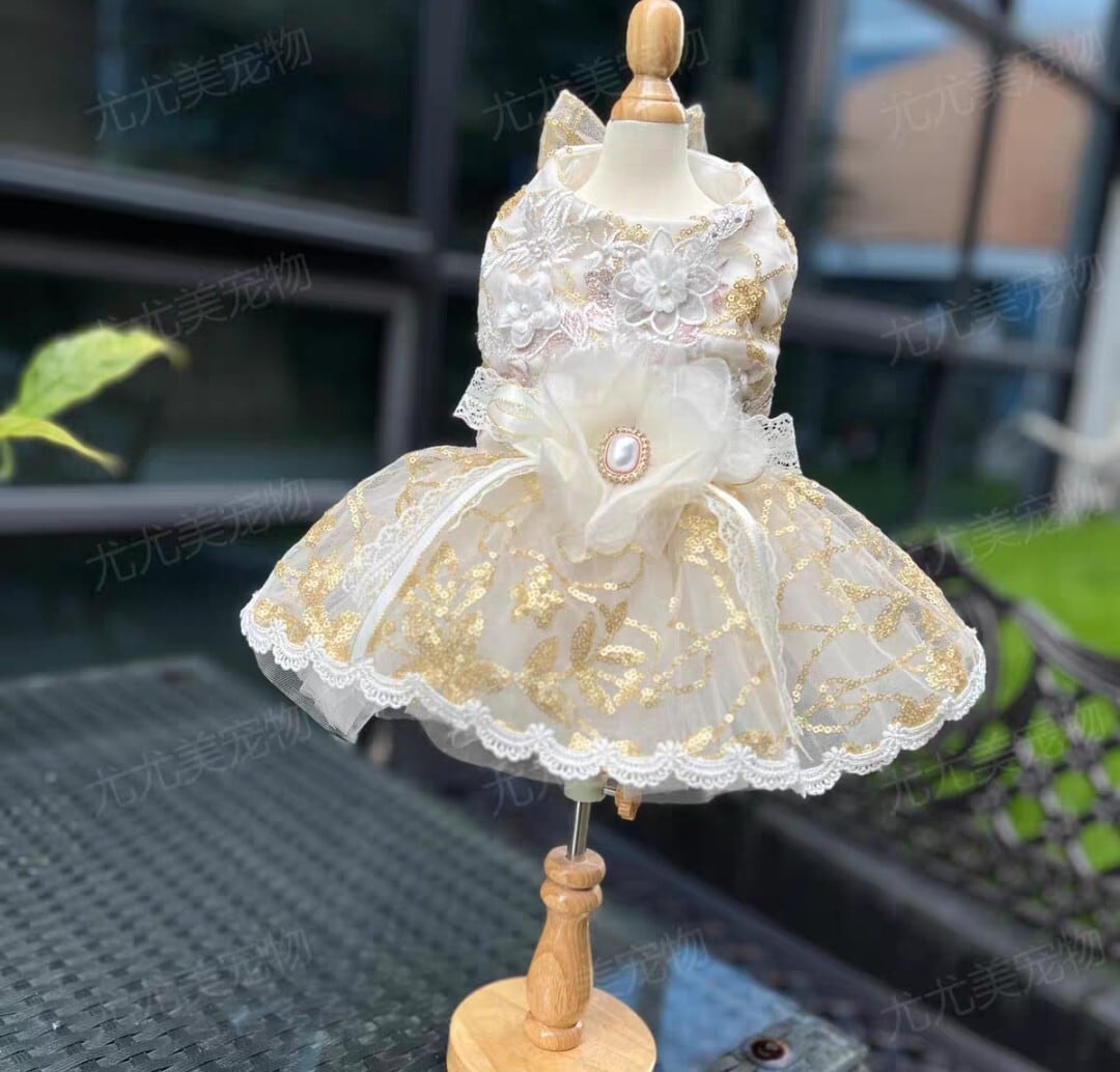 【予約商品】ゴールドスパンコールのホワイトドレス