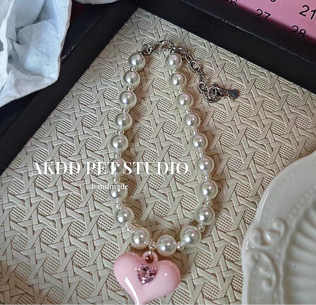 【予約商品】ビジュー付きハート飾りのパールネックレス(3カラー)