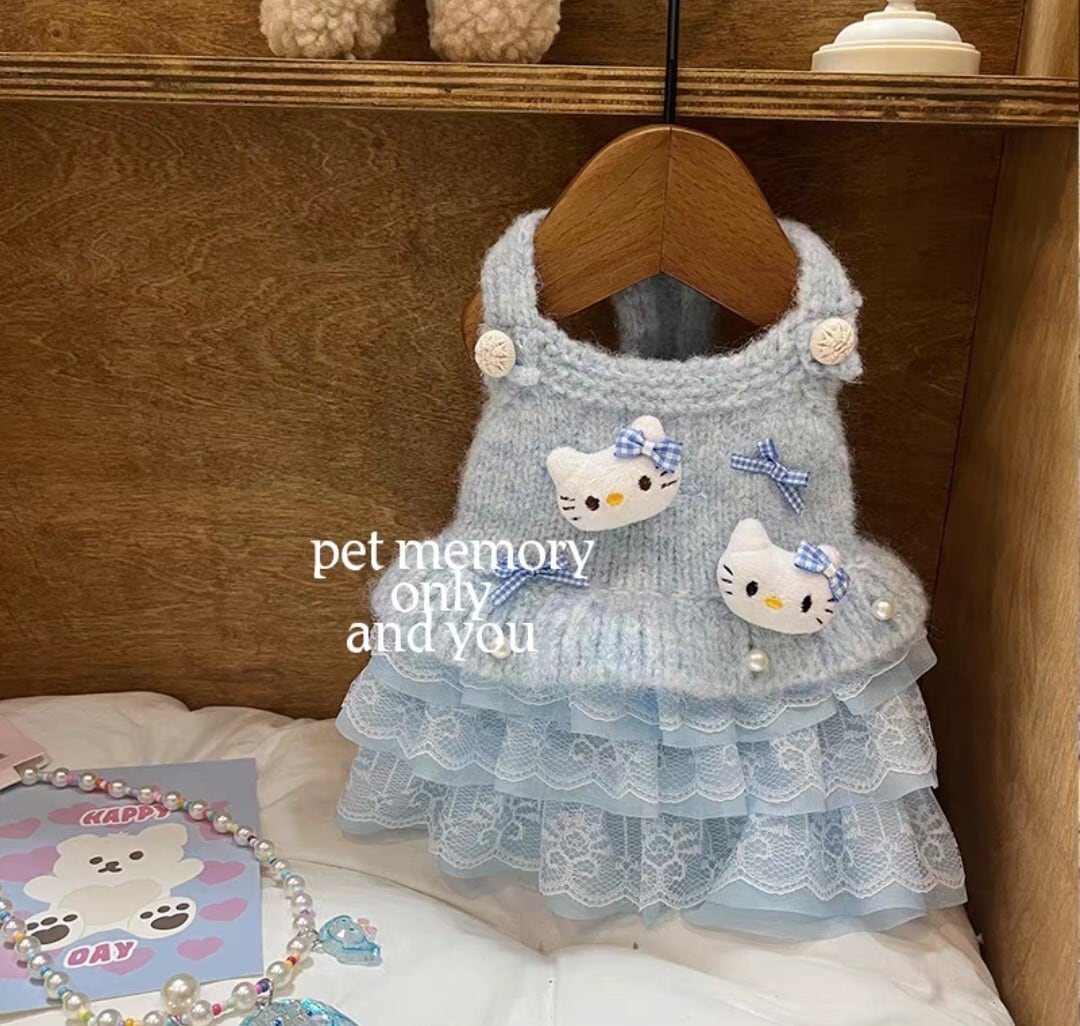 キティちゃんモチーフ付きのフリル部分は上品なレース使用のニットワンピース♡