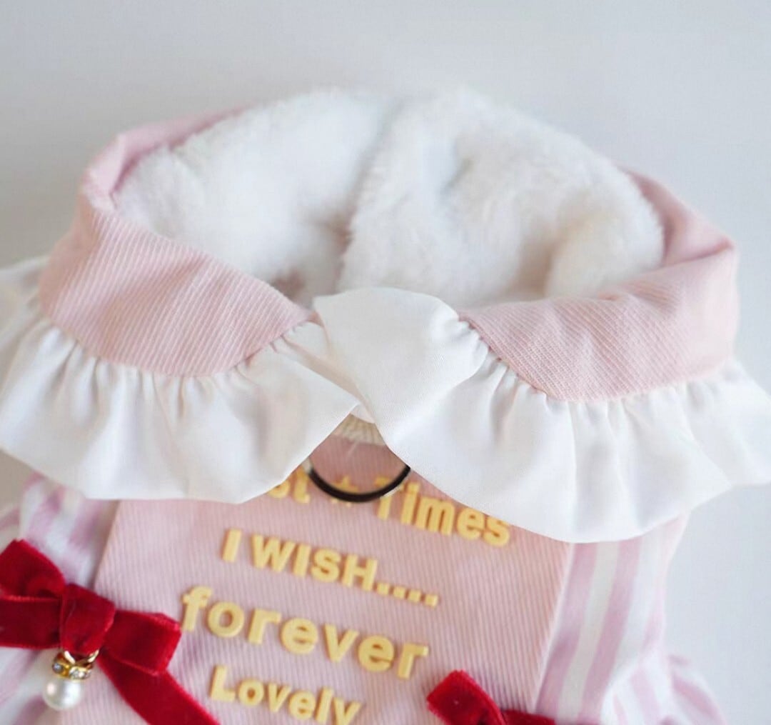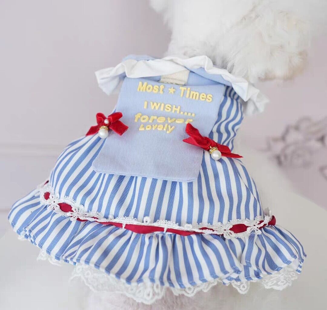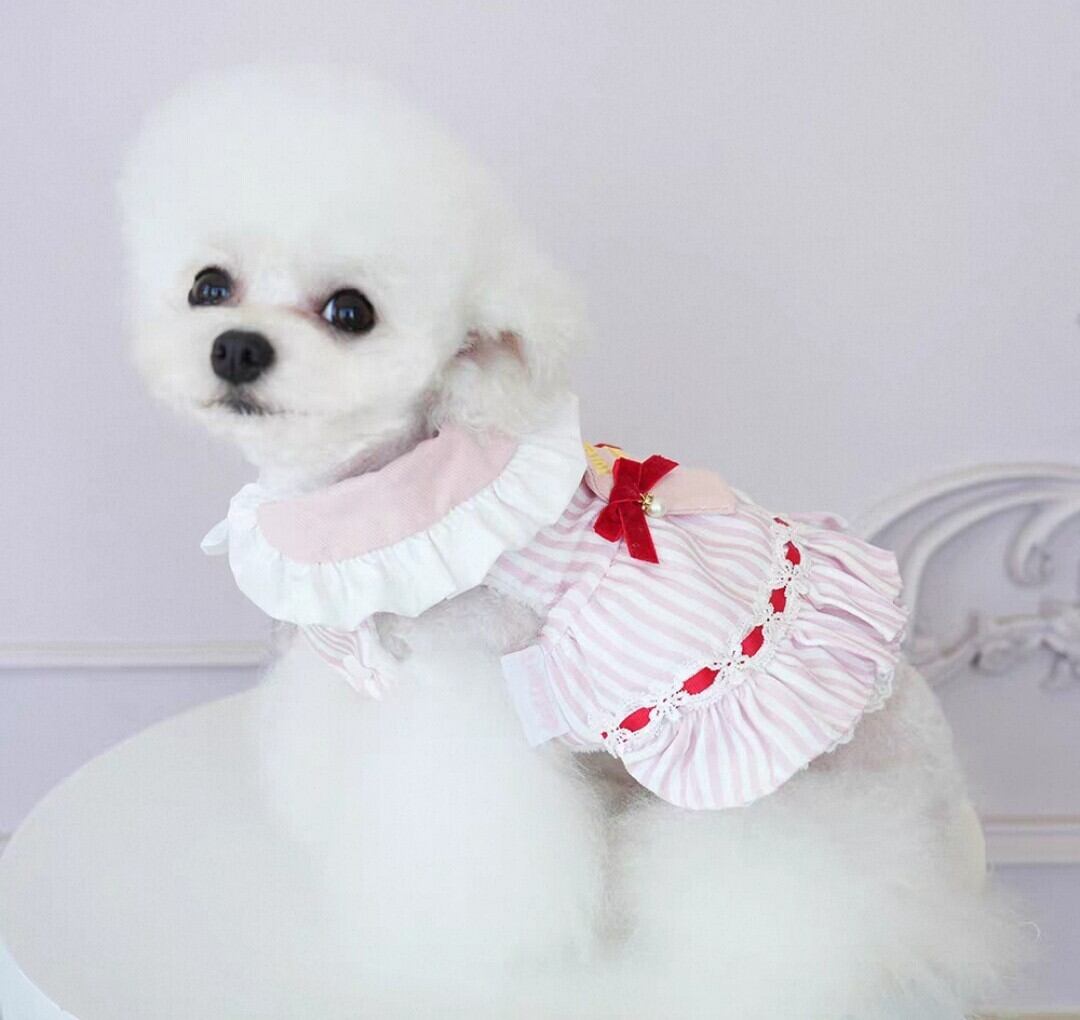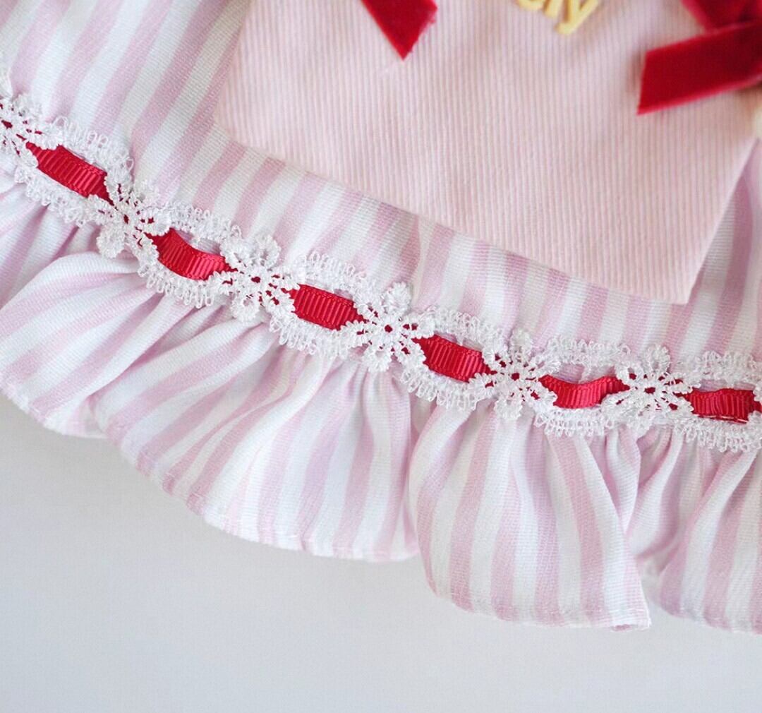 パール付きの赤いリボンが映える、メイドさんのような可愛いストライプのワンピース♡