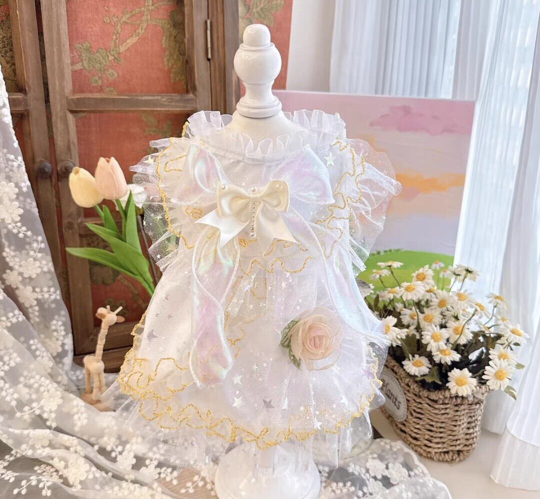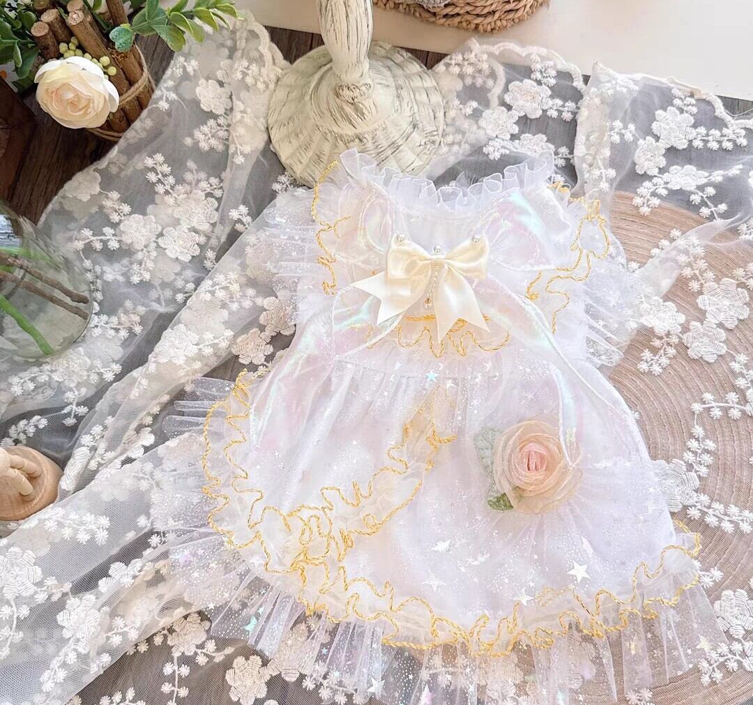 (【MZ】 リボンとお花モチーフ付き キラキラホワイトワンピース)