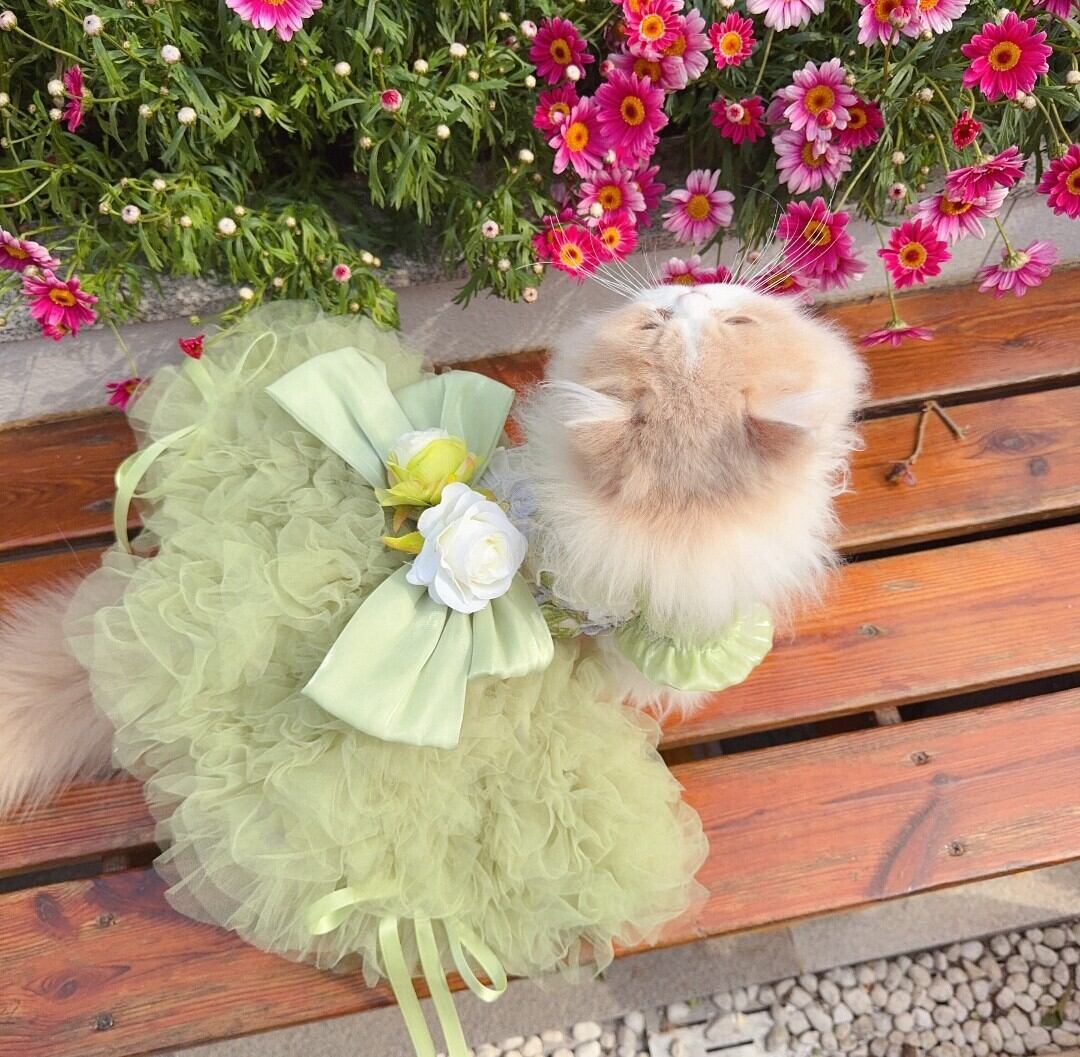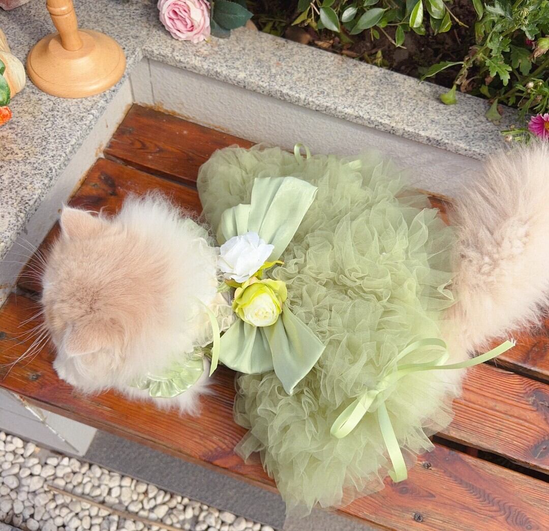 腰のリボンには立体の春らしいフラワーモチーフ付き。春色の優しいグリーンのボリューミーなプリンスな2wayロングドレス♡
