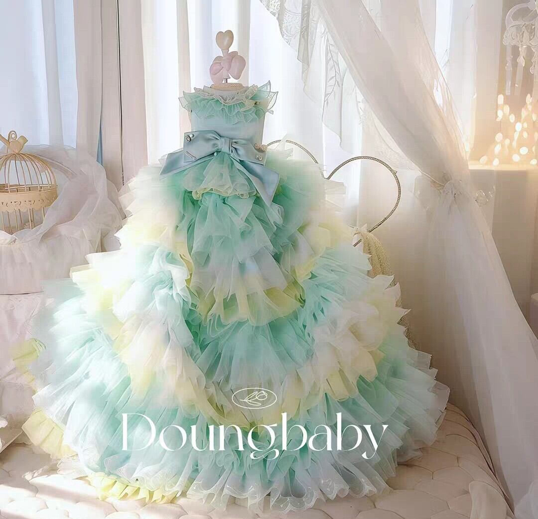ミントグリーンとレモンイエローのチュールが何層も重ねられた、グラデーションが美しい幻想的な妖精のような2wayロングドレス♡