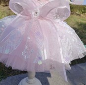 レースたっぷりのお洒落なショートドレス。スパンコールやホロが散りばめてありキラキラです。お色違いのブルーのドレスもあります。どちらもオススメの可愛い作品です♡