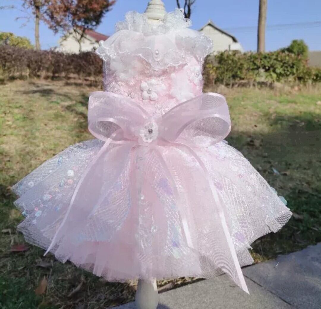 レースをたっぷりのお洒落なショートドレス。スパンコールやホロが沢山散りばめてあり、キラキラです。お色違いのブルーのドレスもあります。どちらもオススメの可愛い作品です♡