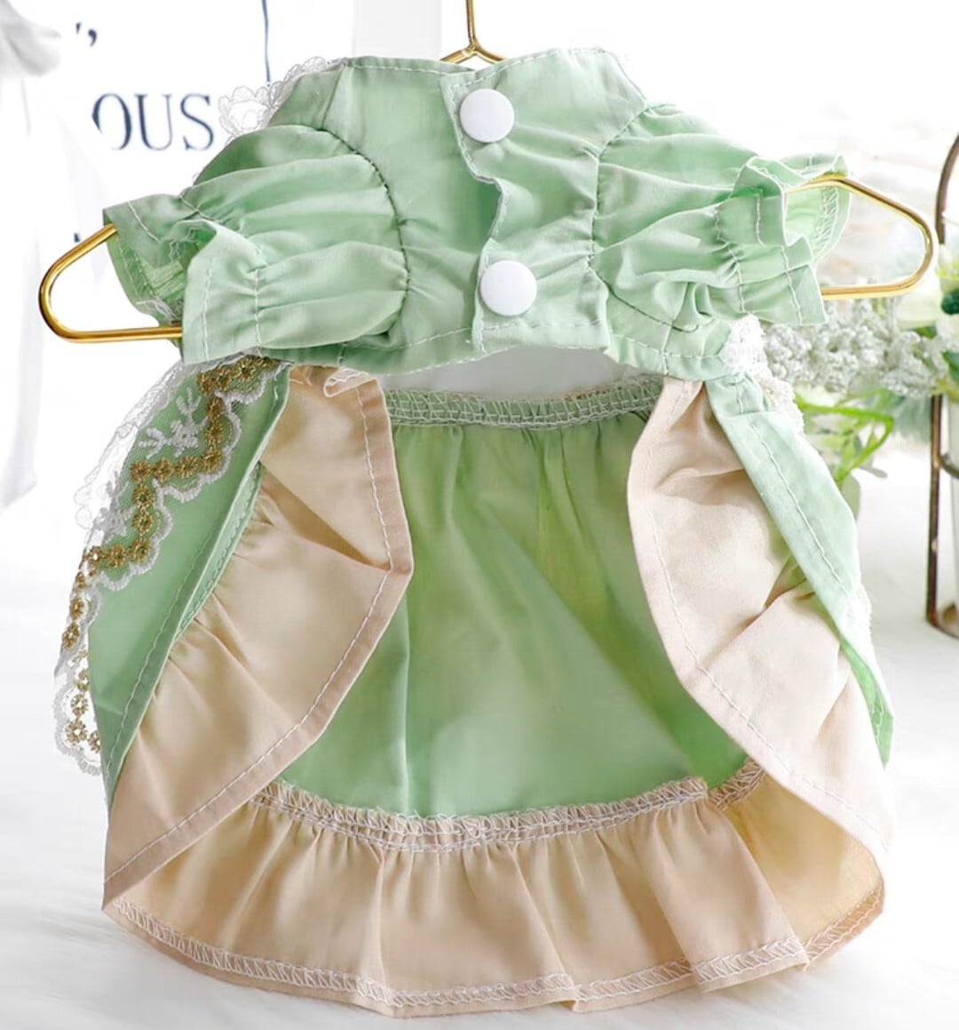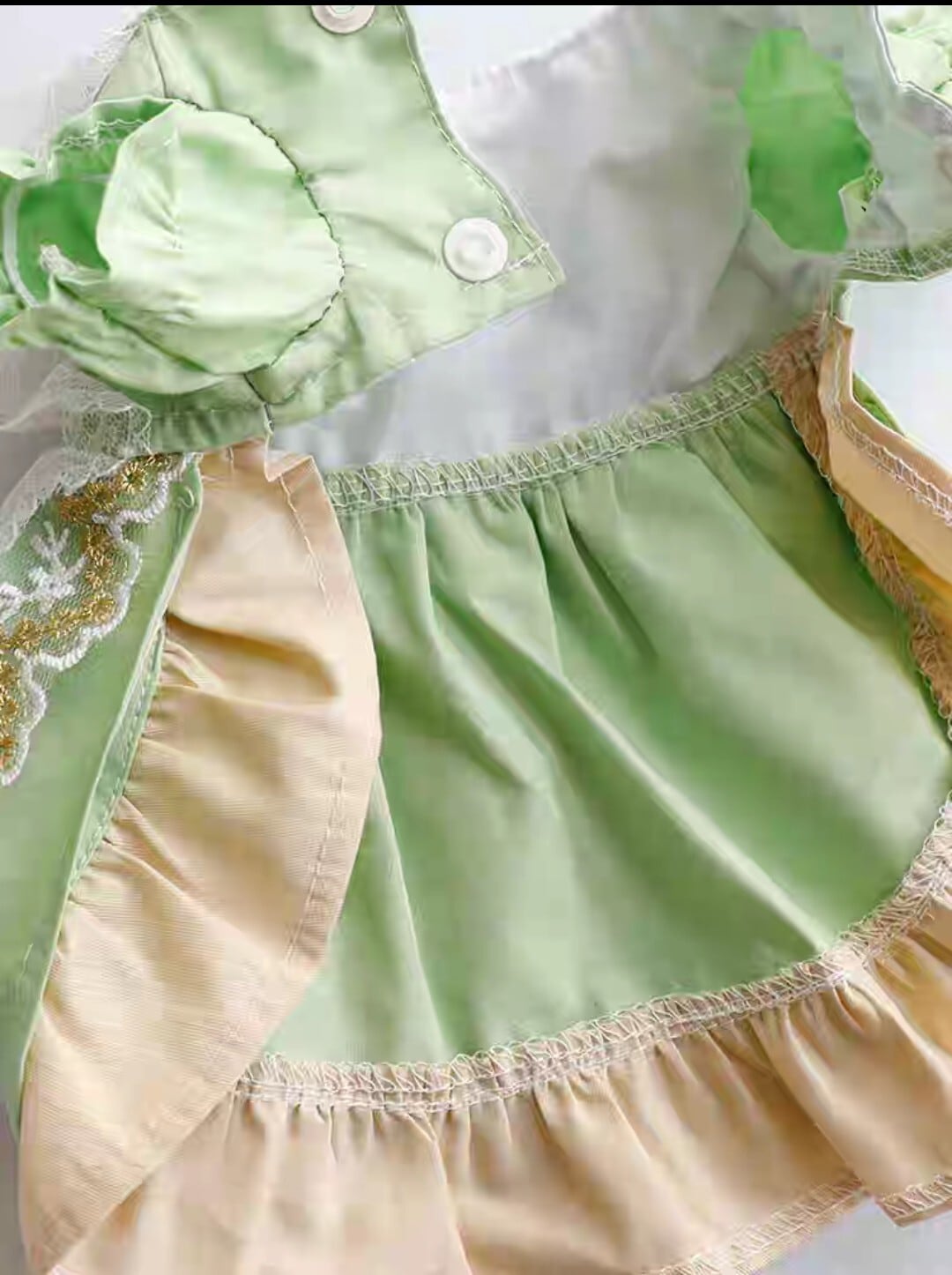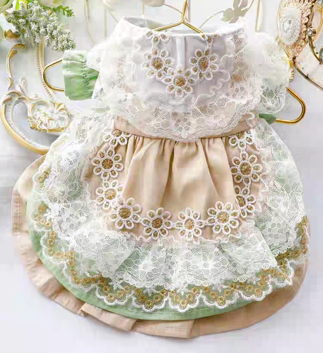 在庫限り【即納商品】グリーンとベージュの小花レースのワンピース