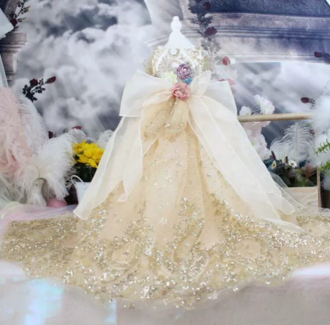 プリンセスになって舞踏会に行きましょう。ゴールドの刺繍でゴージャスでありながら、上品なデザインのプリンセスロングドレス♡