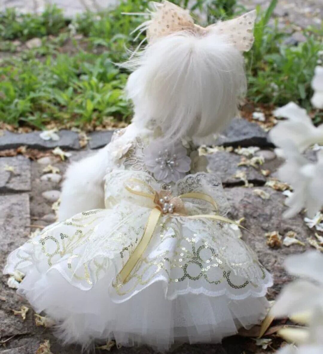 【予約商品】ゴールドスパンコールのホワイトドレス