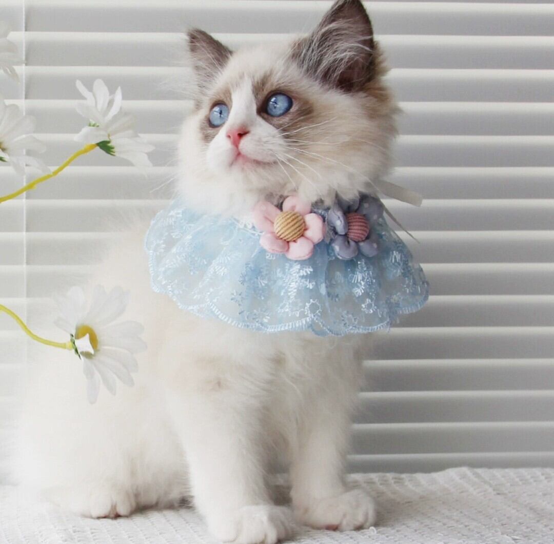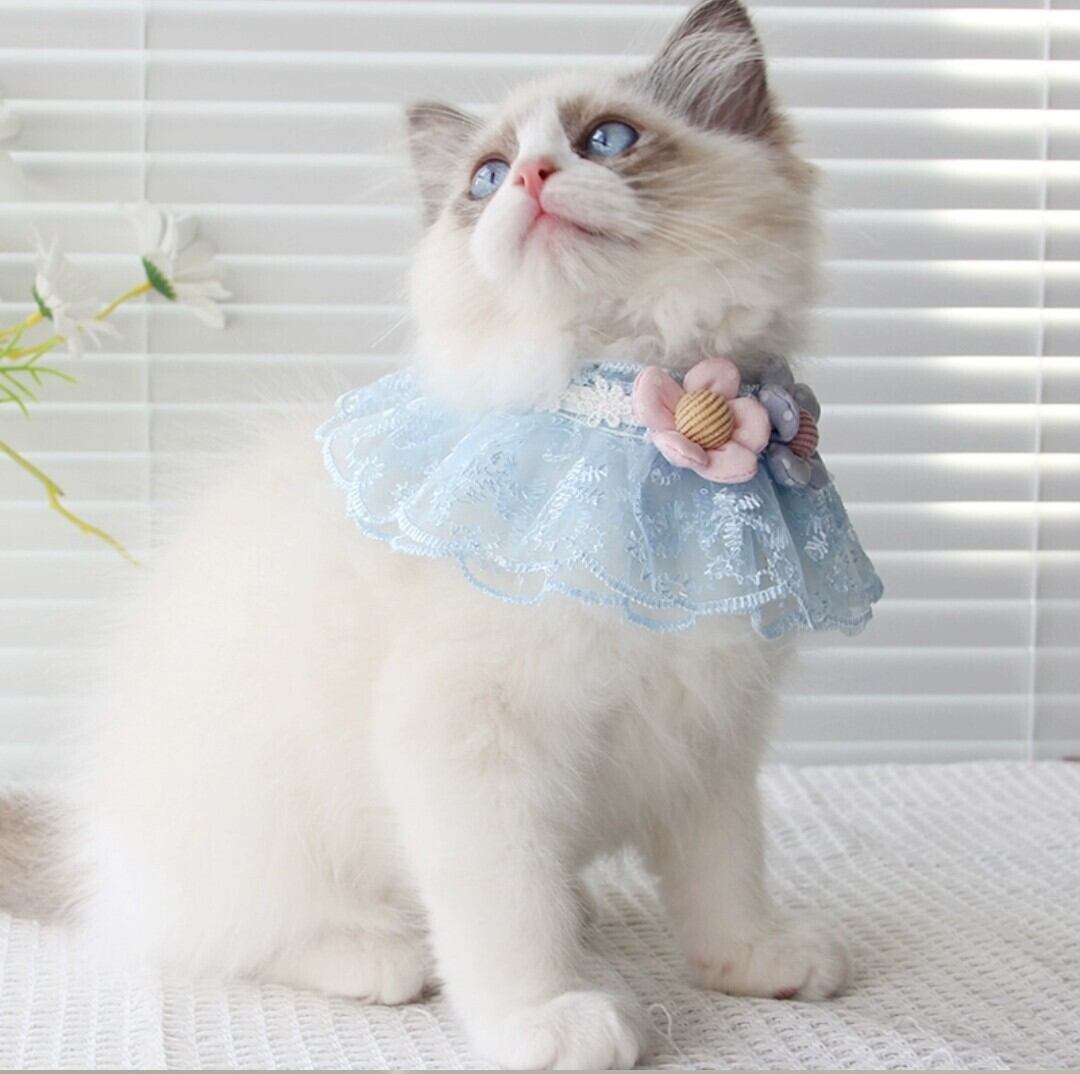 レース素材で優しい色の小花のスタイ♡女の子にも男の子にも似合う水色。春夏にのお洒落にぴったり。ヒモで結ぶタイプのスタイです。