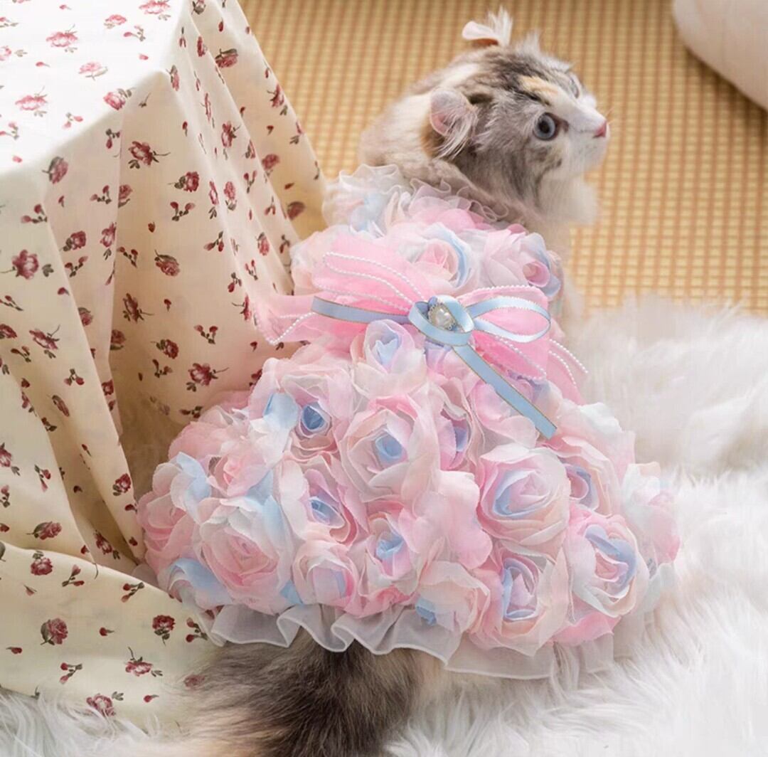 立体ローズのモチーフ生地で作られた可愛いローズドレス♡