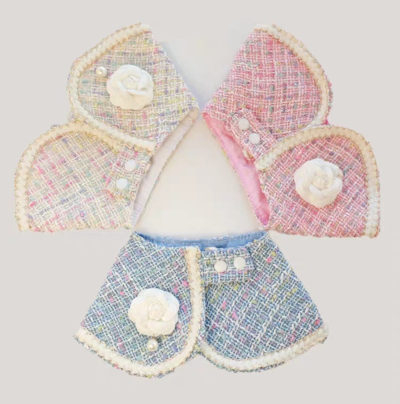 【予約商品】カメリア付きチェック柄ケープ (ピンク、ブルー、ホワイト)