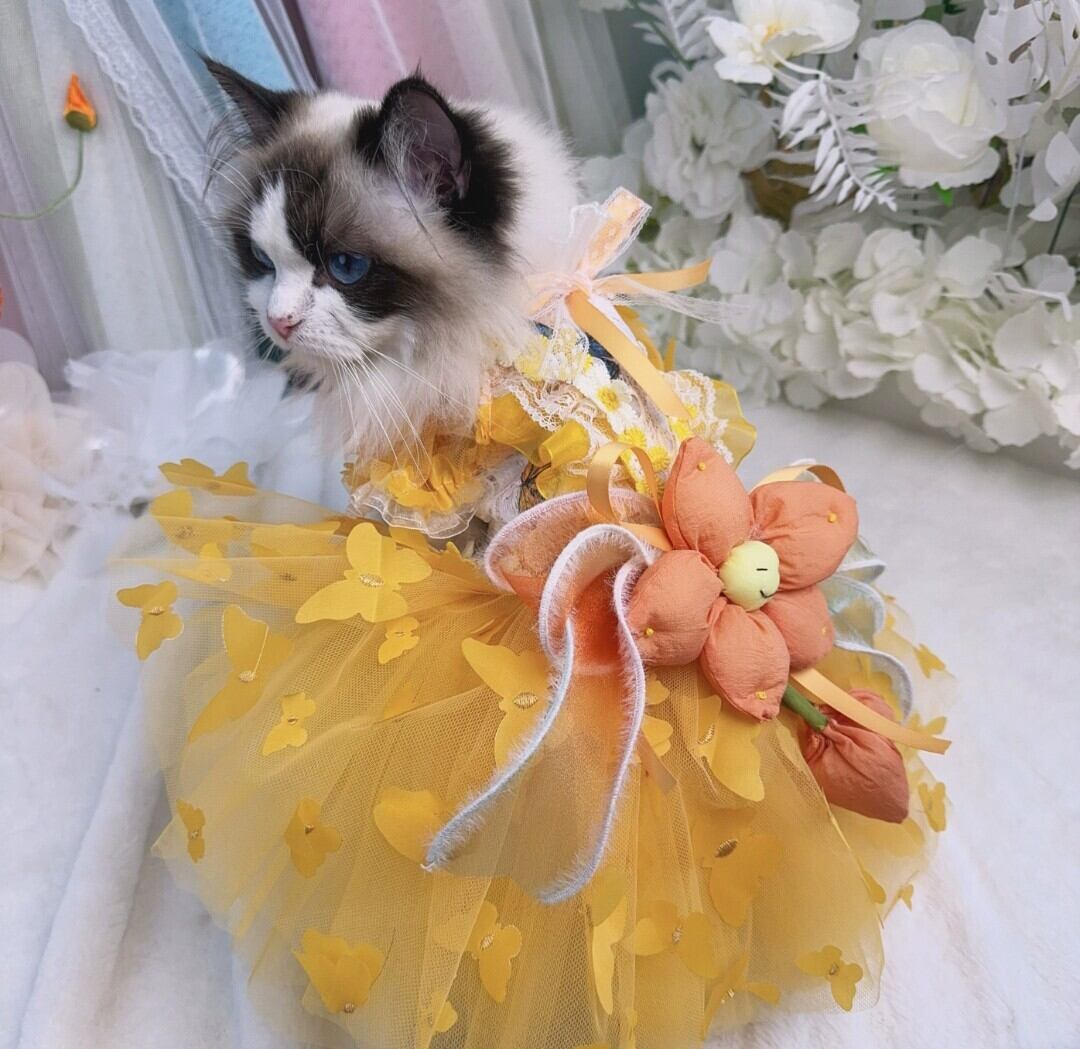 ドレスの裾には蝶々モチーフのチュールを仕様。