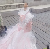何層ものふんわりチュールが素敵なロングドレス。パステルカラーで優しく白のレースとの相性も抜群な、お姫様ドレスです♡