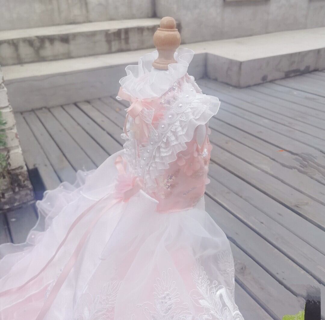 ドレスの背中のお花とレースにマイナーチェンジがありました。大きな白いお花に変わっています。画像6〜7枚目がマイナーチェンジ後の画像です。