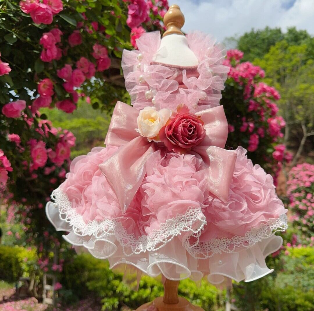 【予約商品】リッチローズモチーフのエレガントショートドレス(ピンク、アプリコット)
