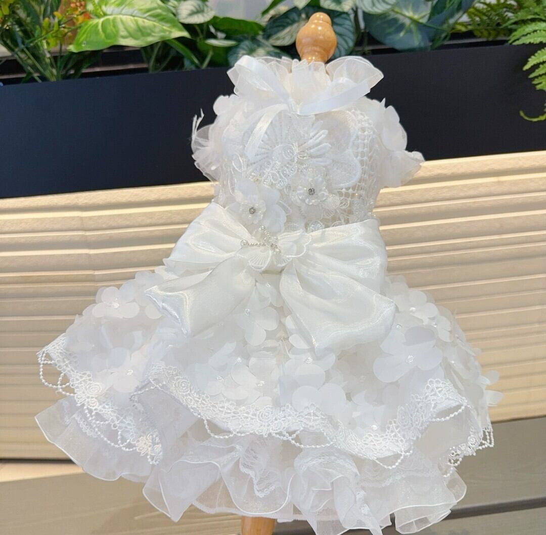 ドレスの裾もたくさんのお花が付いたチュールが使われています。