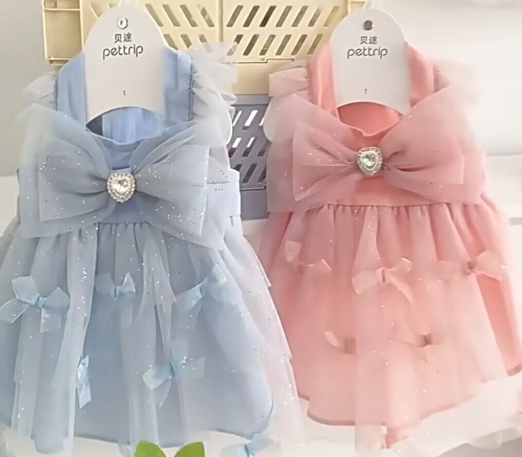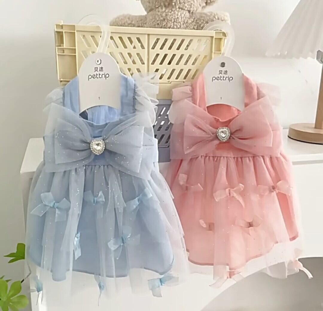【予約商品】リボンが可愛いチュールワンピース(ブルー、ピンク)