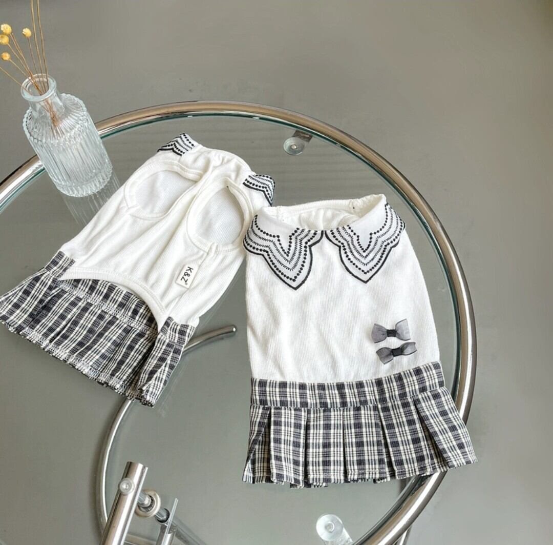 白黒チェック柄のプリーツスカートが可愛いカレッジスタイルのワンピース♡