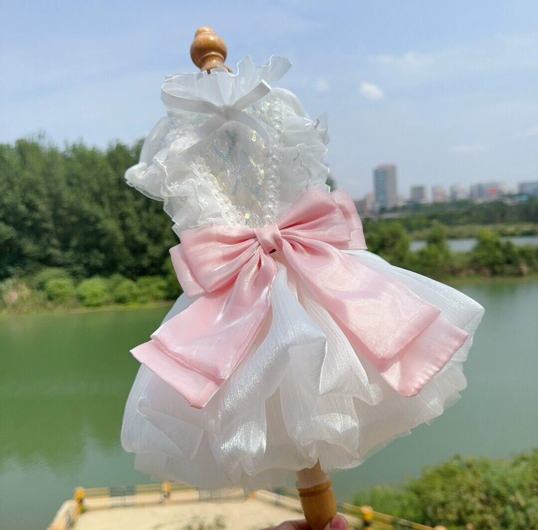 【予約商品】パステルカラーリボンのお嬢様ホワイトドレス(ピンクリボン、パープルリボン、ホワイトリボン)