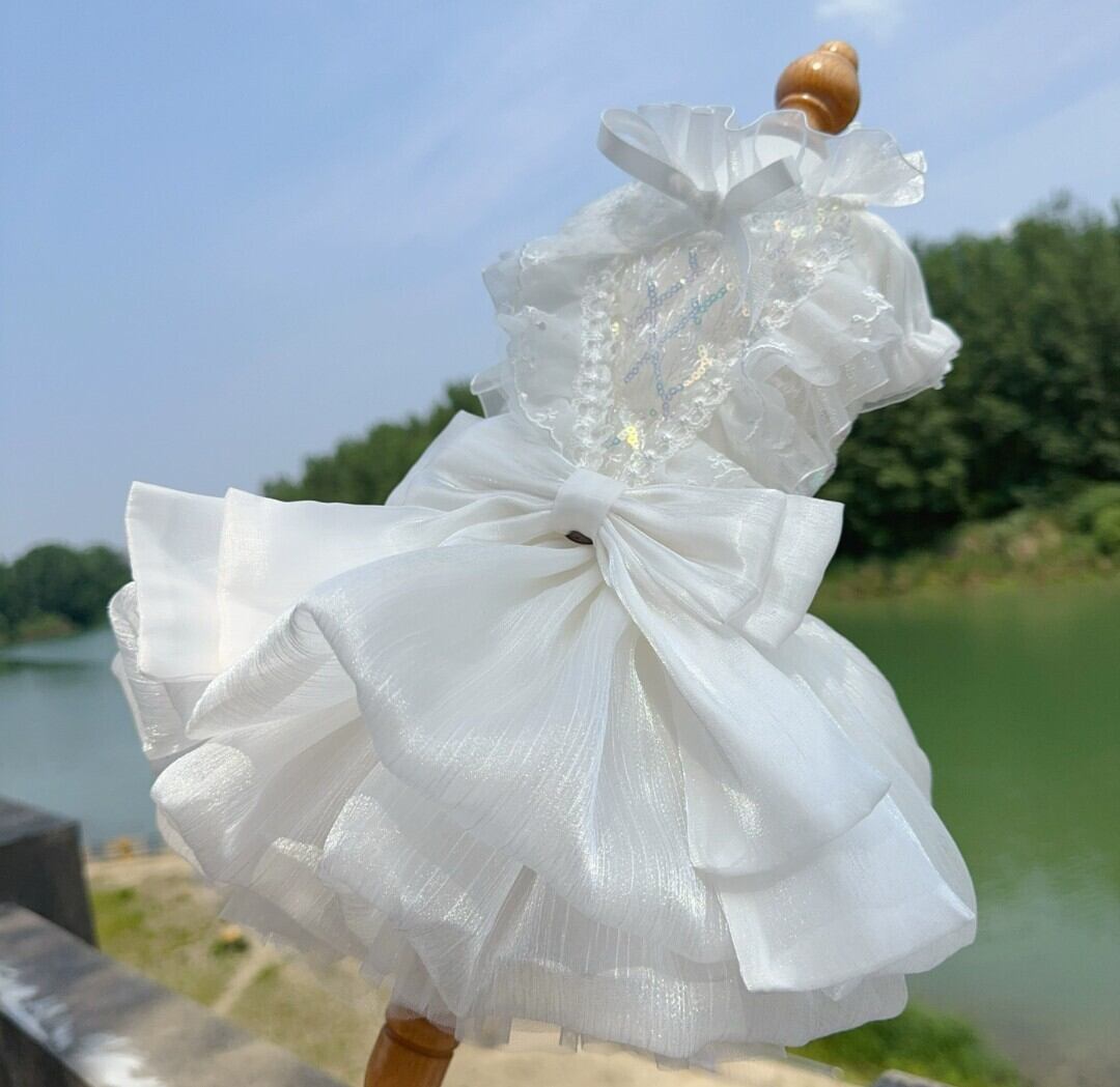 大きなリボンと、衿元や背中のレースデザインが素敵な、ホワイトのお嬢様ドレス♡