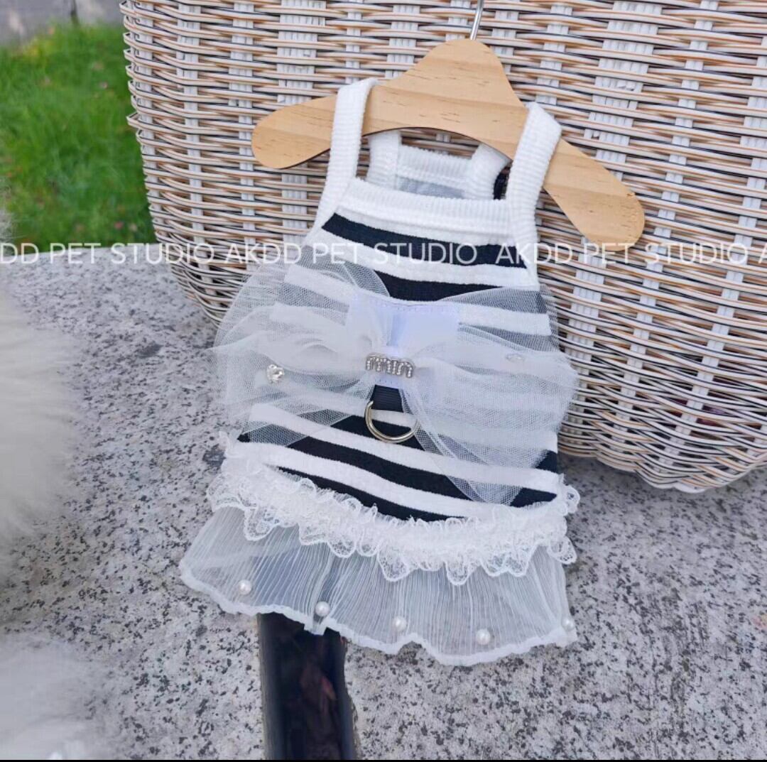 リボンが可愛いDカン付きの白と黒のストライプのワンピース♡